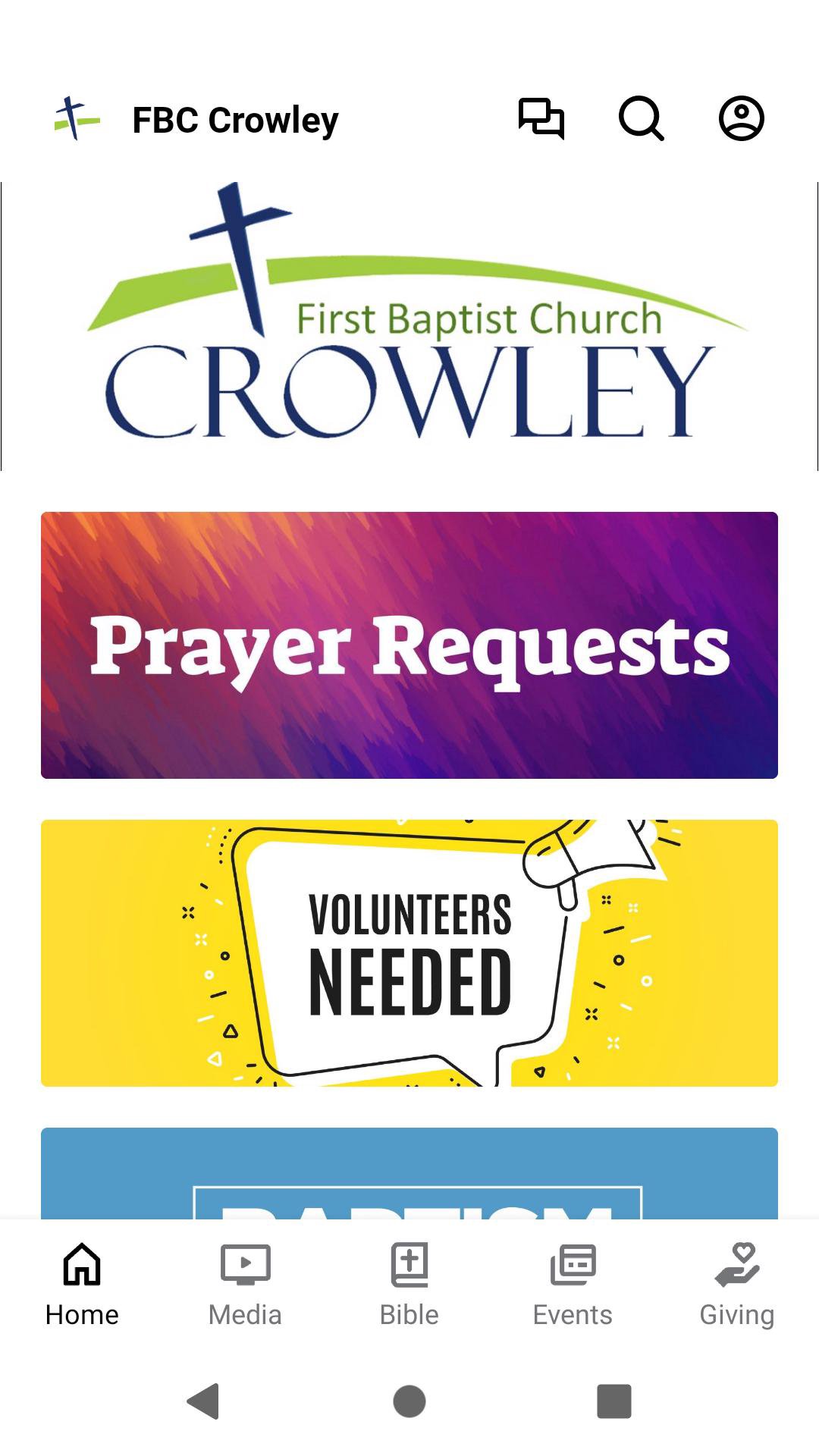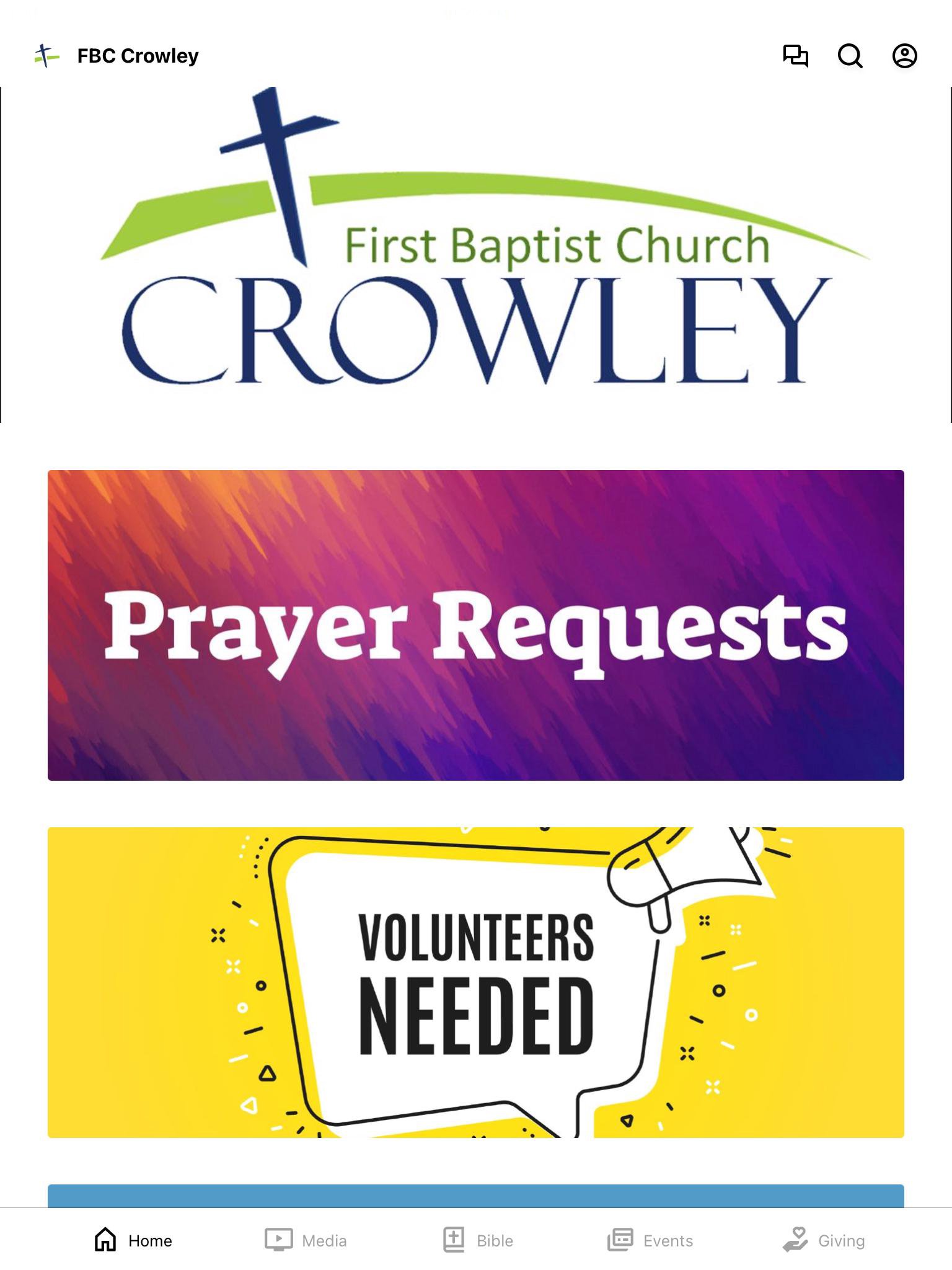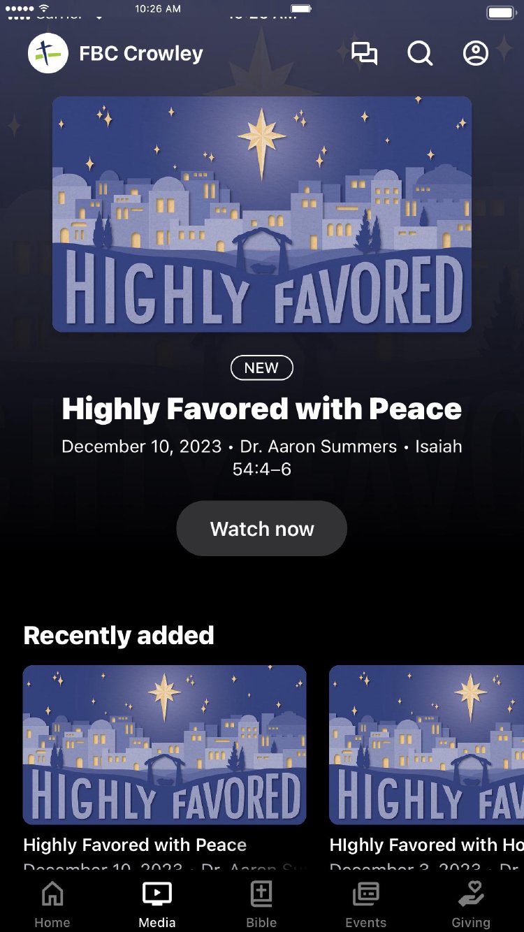 This app will help you stay connected with First Baptist Church Crowley. With this app you can: watch or listen to past messages; stay up to date with push notifications; share your favorite messages via Twitter, Facebook, or email; and download messages for offline listening.