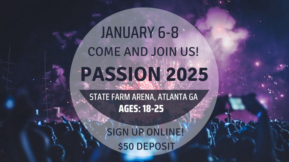 Passion 2025 is a gathering of 18-25 year old's and their leaders united for the fame Jesus. Join us as we gather a generation to once again collectively declare “Yes, LORD!”