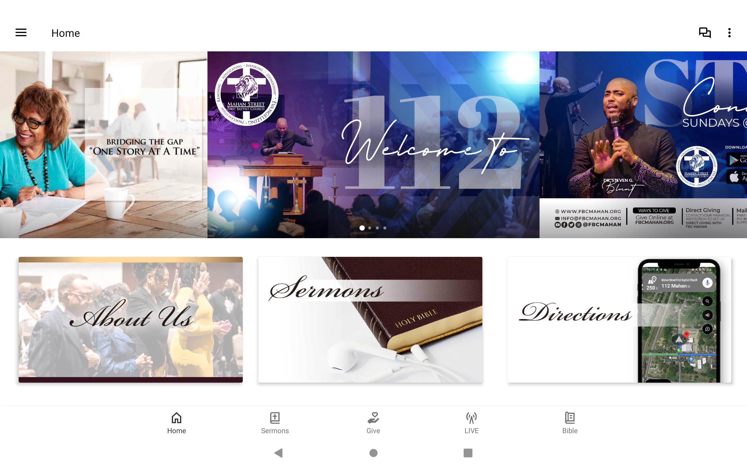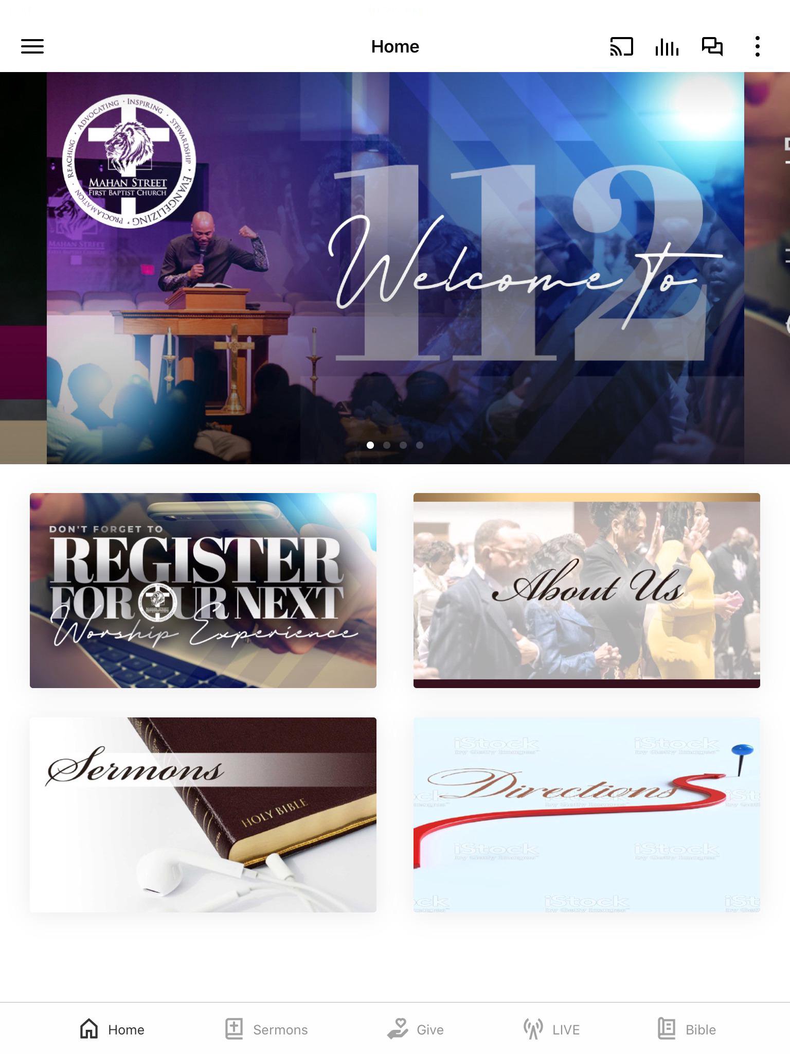 Welcome to the official First Baptist Church Mahan mobile app. This is your one-stop spot for information about FBC Mahan also affectionately known as 112. Get directions, service and event times and a plethora of information from ministries to outreach. Watch our live-stream, past sermons, connect with ministries, and stay up to date with all things FBC Mahan.