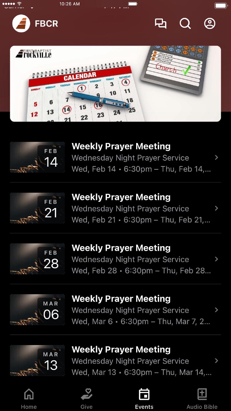 This app will help you stay connected with the day-to-day life of First Baptist Church of Rockville. With this app you can: watch or listen to past messages; stay up to date with push notifications; share your favorite messages via Twitter, Facebook, or email; and download messages for offline listening.