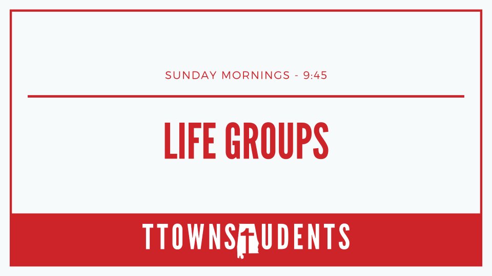 Join us every Sunday morning at 9:45 as we gather for life groups! Students will be grouped together by grade and walk through a lesson that teaches us more about Jesus and how we can live for Him in everyday life.