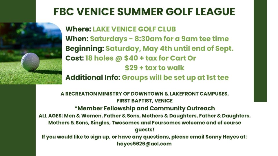 A RECREATION MINISTRY OF DOWNTOWN & LAKEFRONT CAMPUSES, FIRST BAPTIST, VENICE