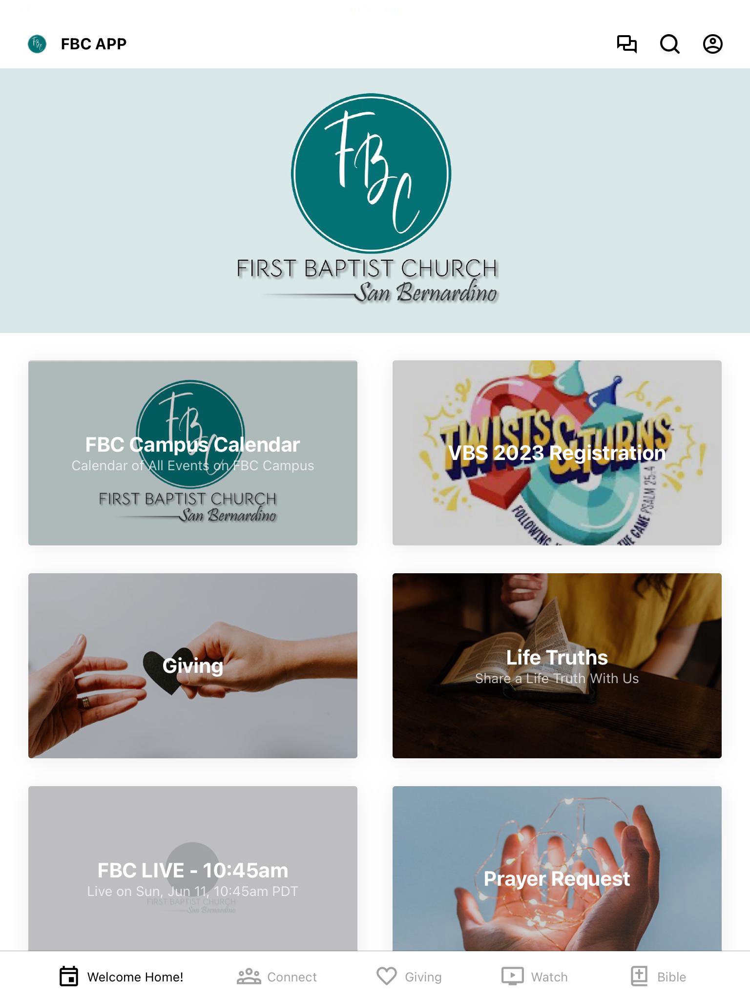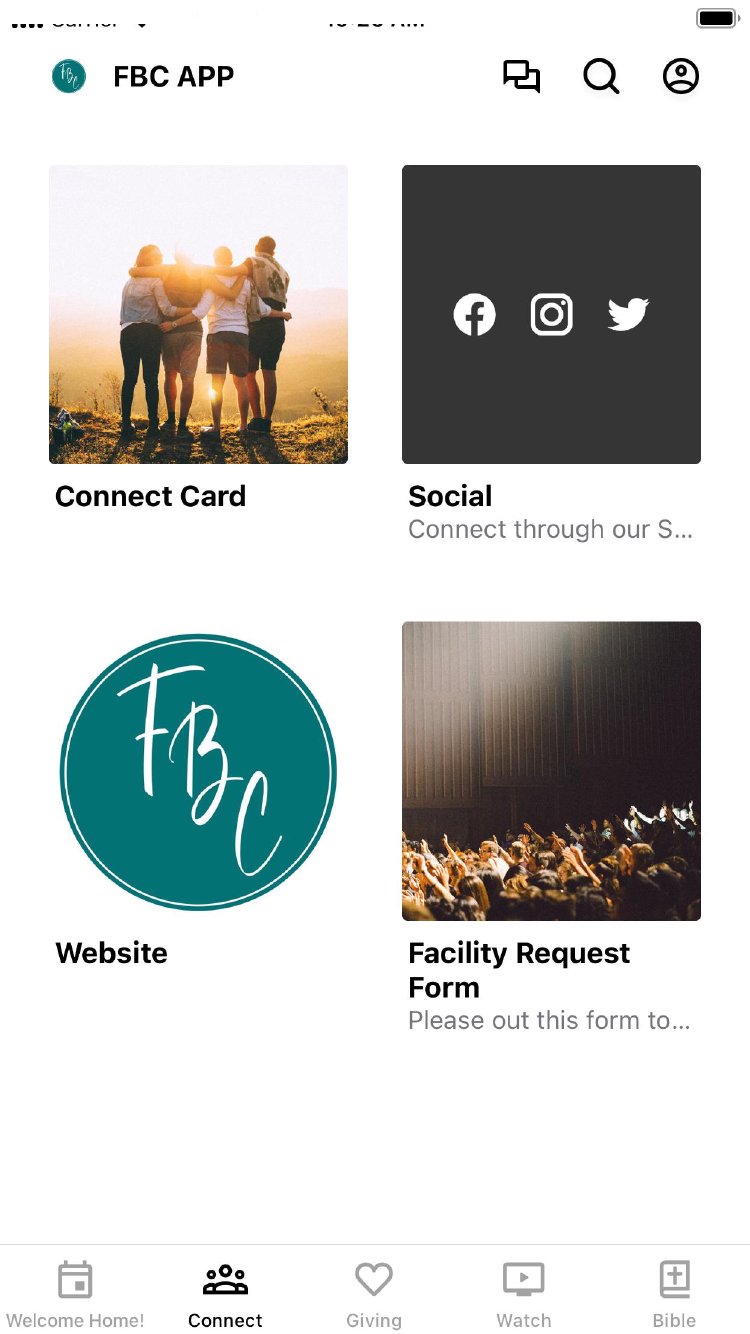 The FBC app includes giving, multimedia, events, prayer requests, and so much more. Stay connected with your church family. Use the provided tools to send messages, join a growth group, take notes during the sermon, start a new Bible study, and give your weekly/monthly tithes and offerings