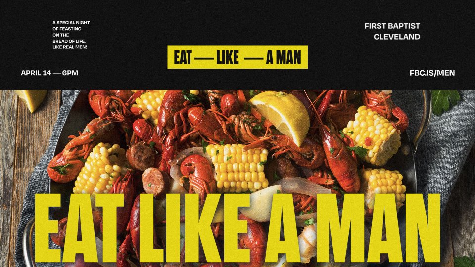 First Cleveland will be hosting Eat Like A Man, a men's event focused on gathering together to grow as men of God with special guest, Lex Luger, on April 14th at 6:00p. Tickets are on sale now!
