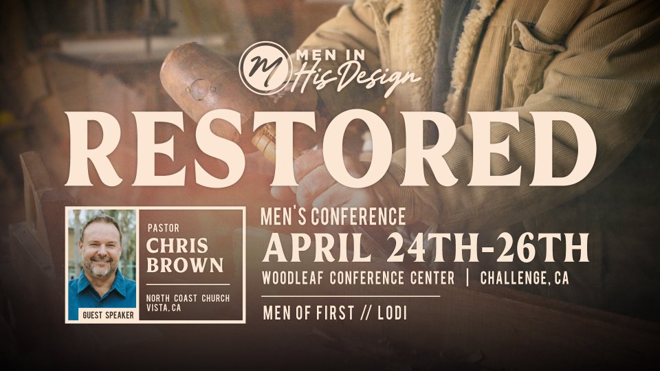 Men in His Design partnering with the Men of First invite you to a life changing weekend conference at the beautiful Woodleaf Conference Center in Challenge, California. With Guest Speaker Chris Brown, lead pastor of North Coast Church, Vista Ca and the Men of First Worship Band, it is sure to be a weekend God will use to change the hearts and lives of hundreds of men.