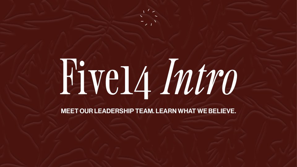 New to the church? Welcome to Five14 Intro - a time to gather in THE BUNGALOW after service and say hi to our leadership team! A brief introduction and overview of the church will be shared along with an invitation to come to our new membership class, Five14 Orientation.