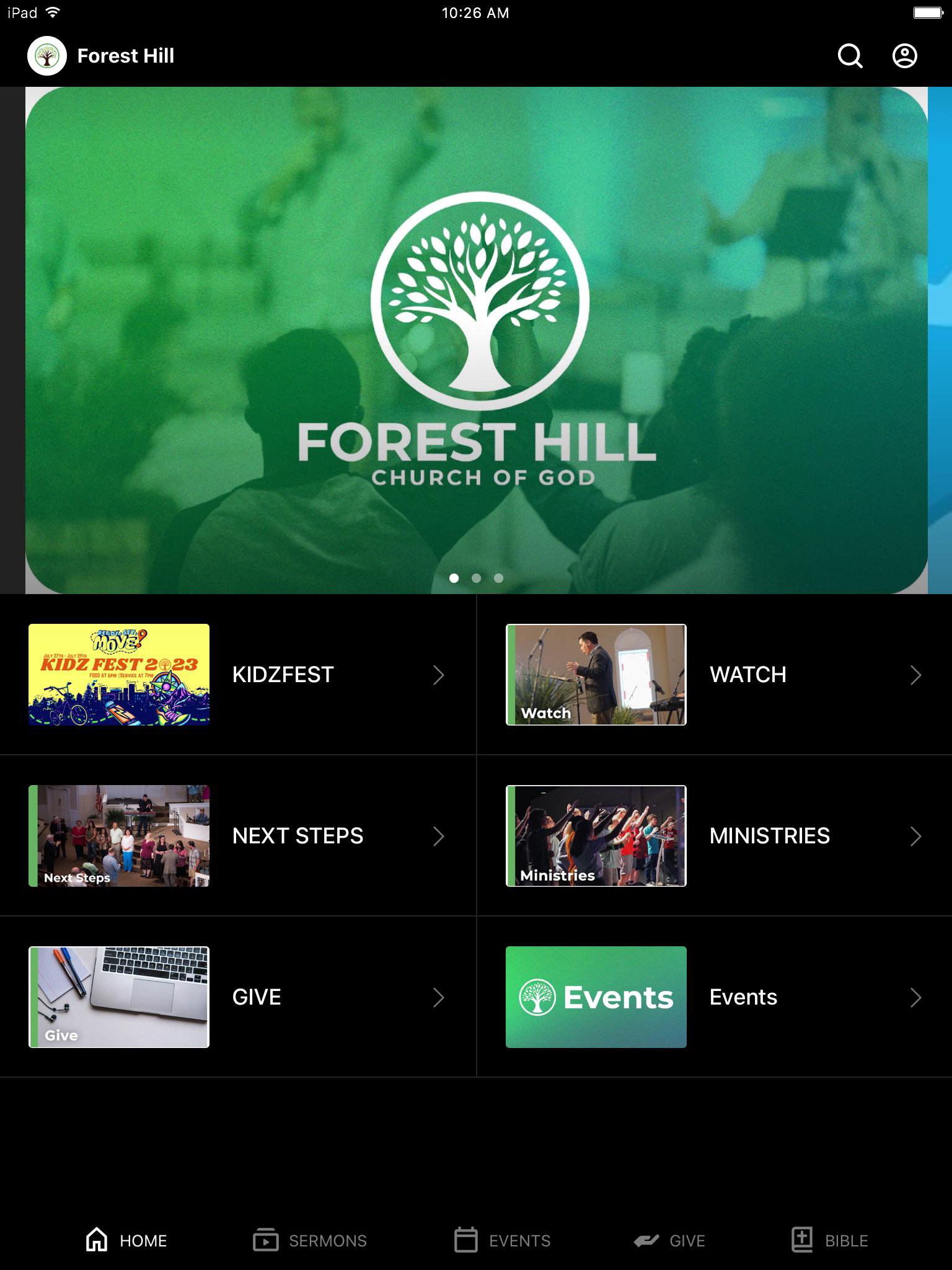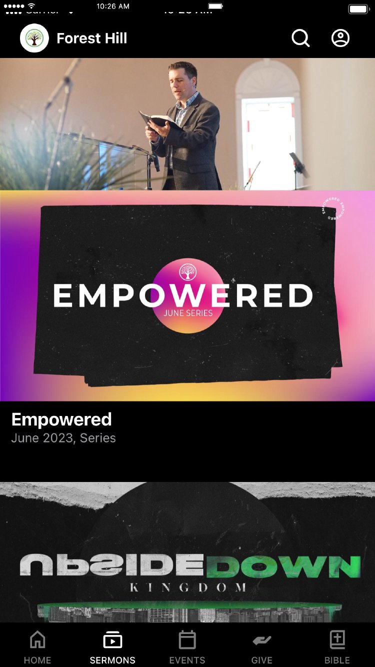 Stay connected to The Hill wherever you go! With the Forest Hill app, you have access to latest messages, Bible Plans, on-demand services, info on church events, and much more! For more info, visit us online at http://foresthillcog.org