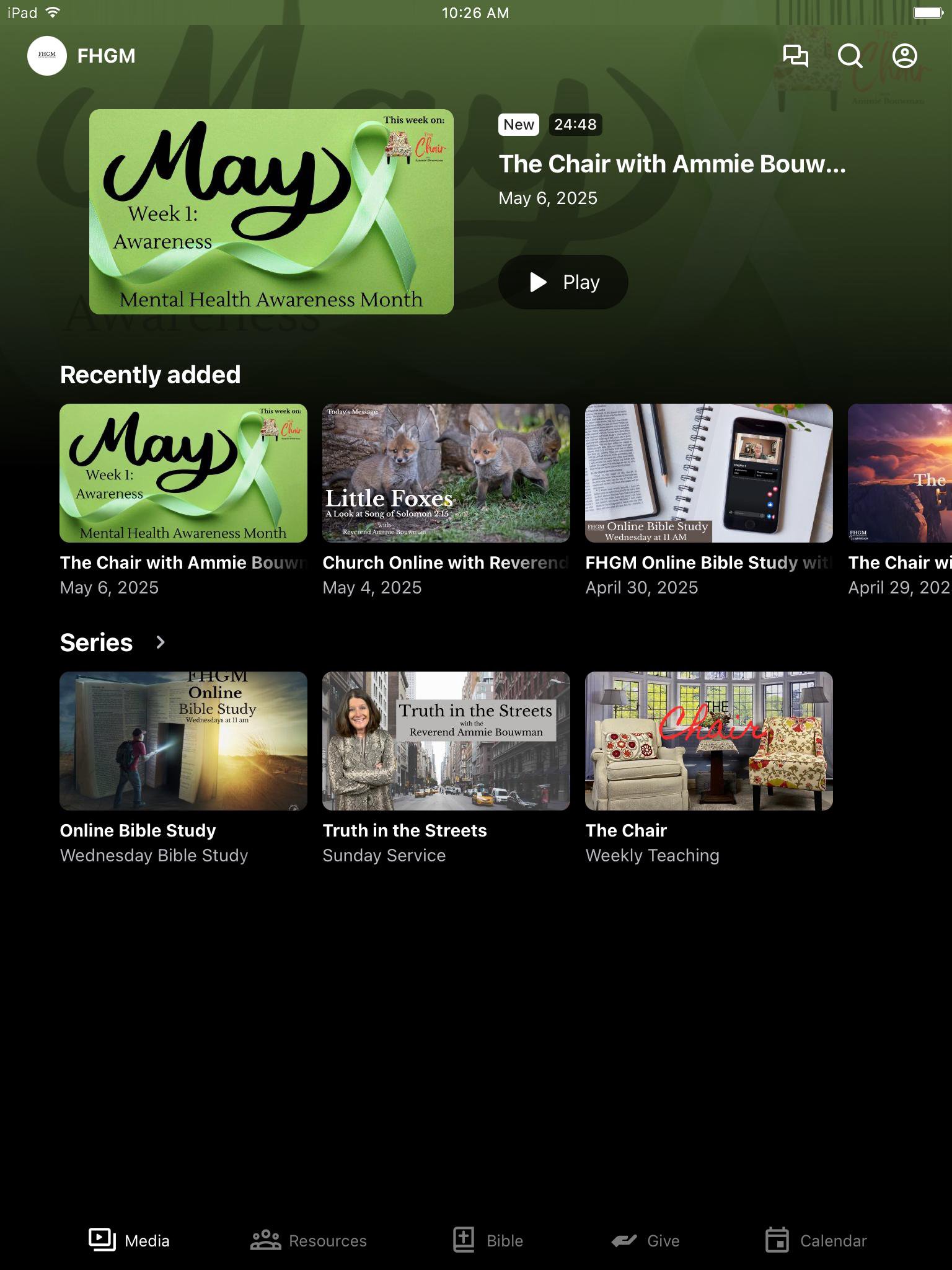 Join Reverend Ammie Bouwman for Sunday services, Tuesday teachings, daily devotions, books, resources, and all the ways God is moving in For His Glory Ministry.