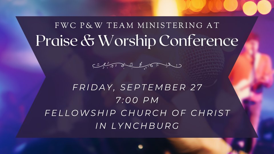 Our Praise & Worship Team will be ministering during the Fellowship Church of Christ's Praise and Worship Conference. Come support our team and the local community by attending.