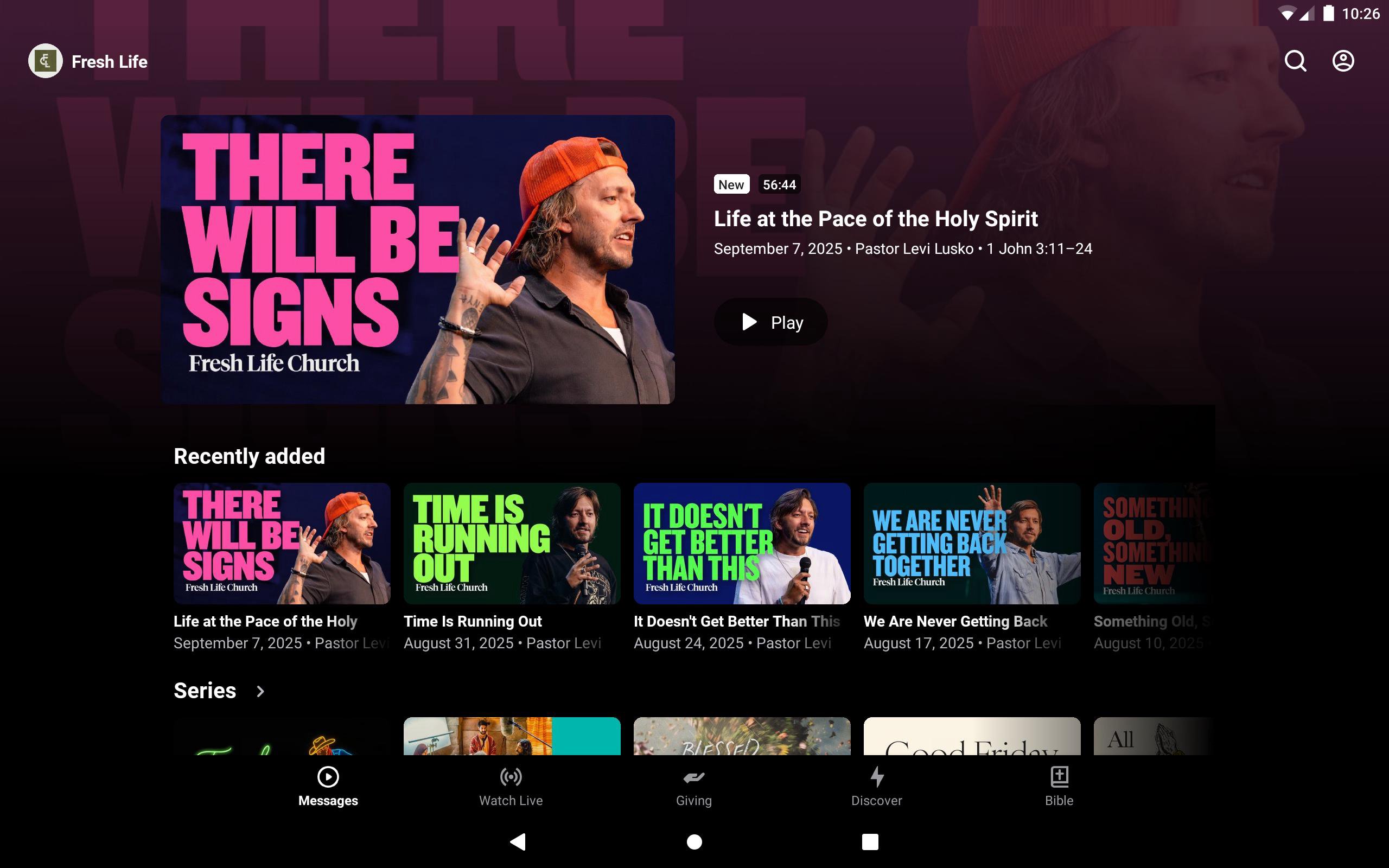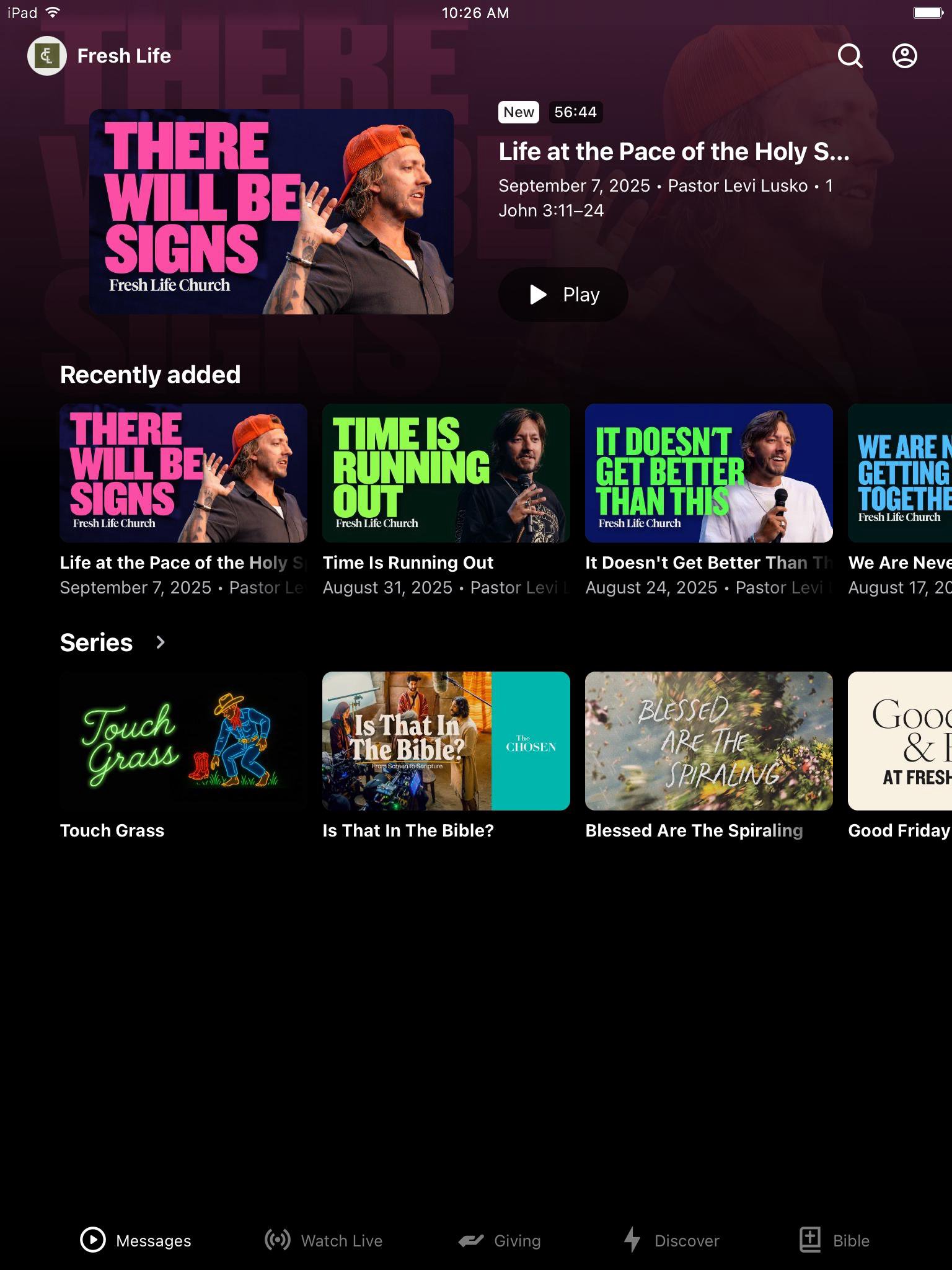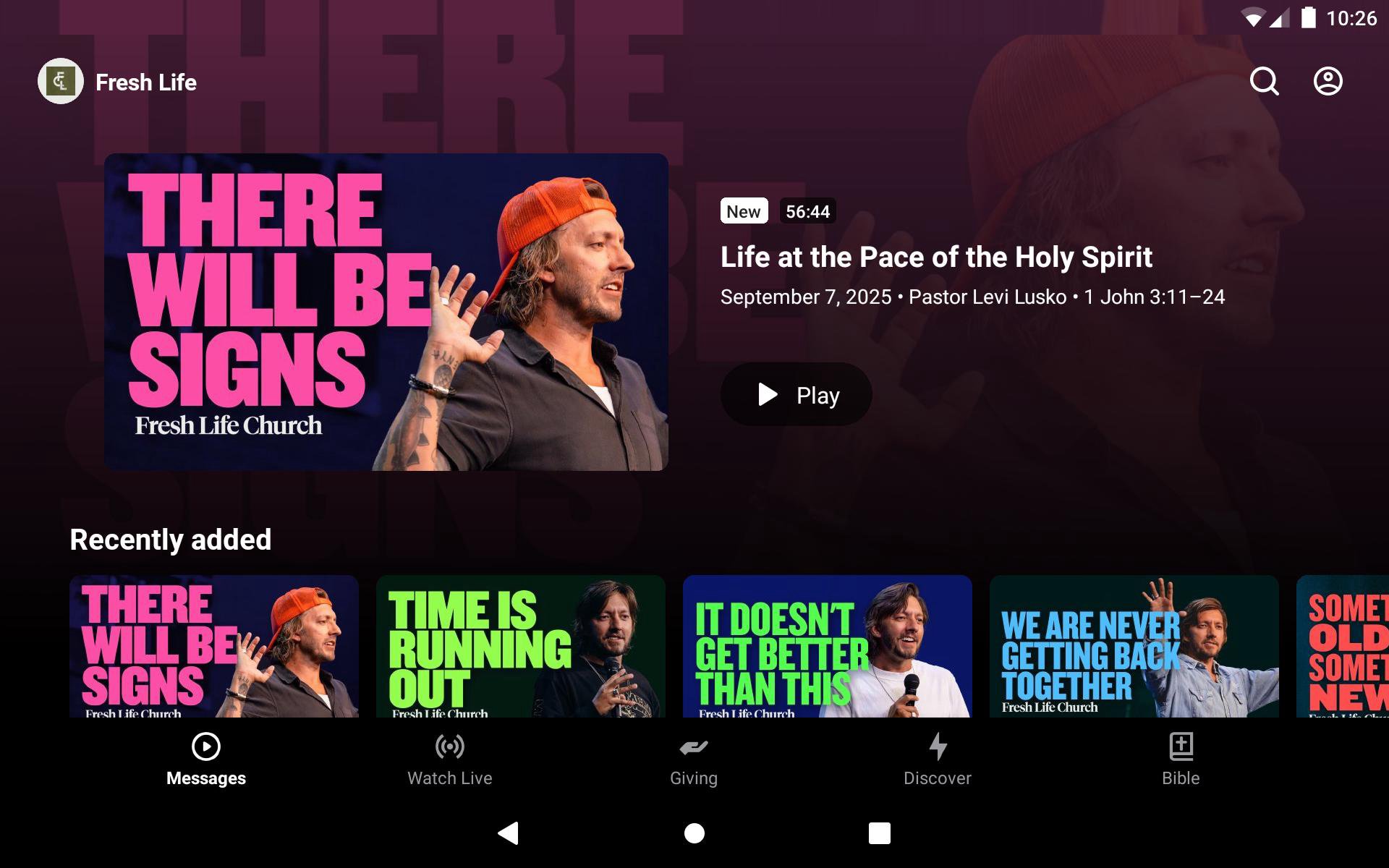 Fresh Life Church exists to see people stranded in sin find life and liberty in Jesus Christ. The Fresh Life App is filled with powerful content from Fresh Life Church, led by Pastor Levi Lusko and Jennie Lusko. Watch live and on-demand sermons, join live gatherings, and explore messages designed to encourage and challenge your faith. With the app, you’ll never miss a moment. Stream online services every weekend, stay connected wherever you are, and easily share life-changing messages with friends and family. Key Features: - Watch live services from Fresh Life Church. - Stream on-demand messages from Pastor Levi Lusko, Pastor Jennie Lusko, and other voices. - Stay connected and take your next steps with Fresh Life Church. Download the Fresh Life App today and move closer to finding life and liberty in Jesus Christ.