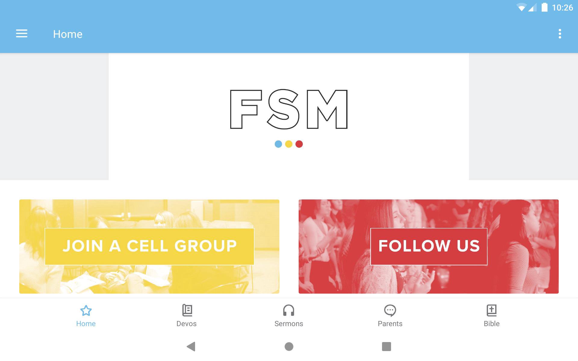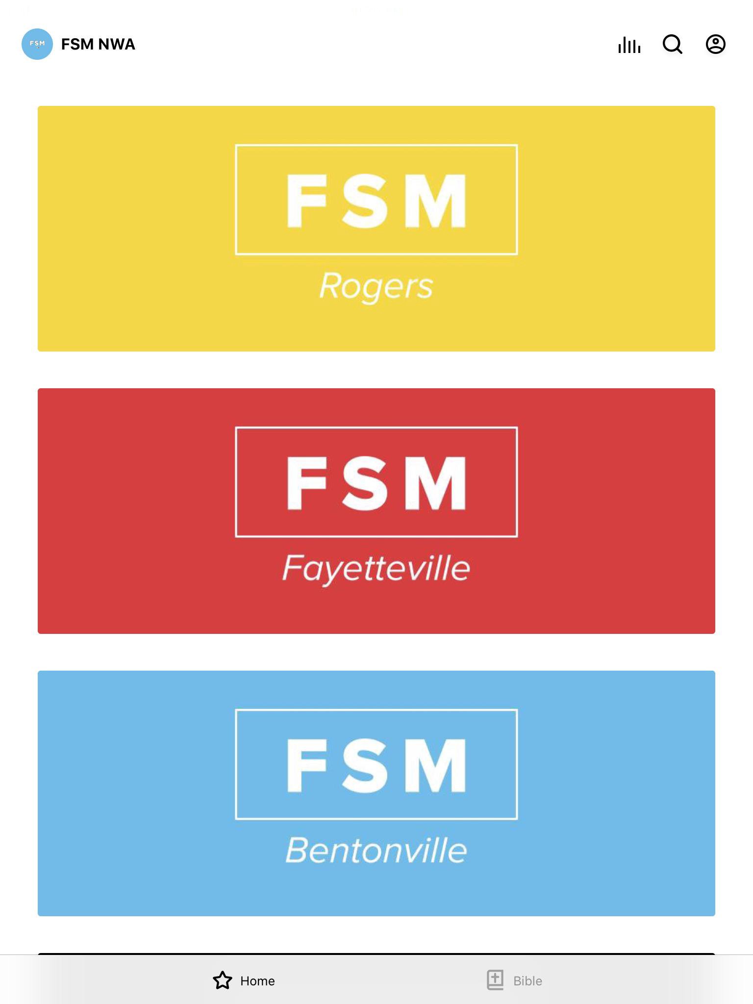 Welcome to the official FSM NWA app! We hope this app provides you all with easy access to all things FSM. We have sermons, event information, cell group curriculum, leader training resources, devotionals and so much more. Feel free to recommend this app to any of your friends who are looking for a church to connect with. For more information about FSM please visit: https://fellowshipnwa.org/students The FSM NWA App was created with the Subsplash App Platform.