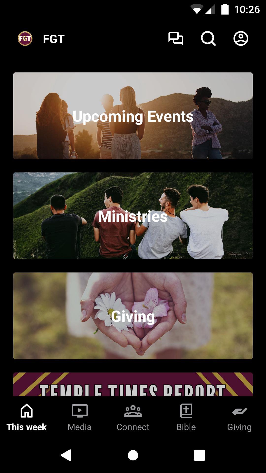 This app will help you stay connected with the day-to-day life of our church. With this app you can watch or listen to past messages, stay updated with push notifications, read the Bible, and view our calendar.