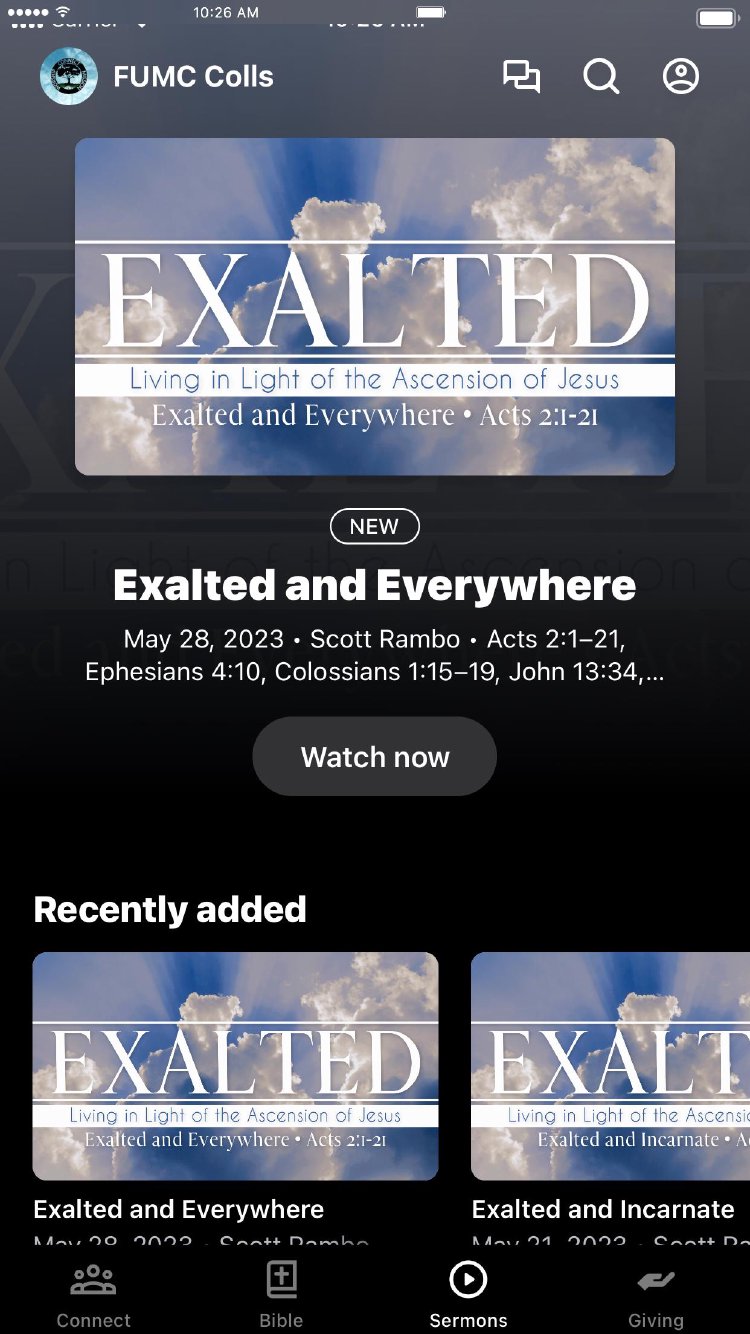 At FUMC Collingswood we want to move toward God in worship, toward one another as we connect, and toward our community and the world in mission. This app will help you stay connected with the community and mission of FUMC Collingswood. With this app you can: watch or listen to past messages; stay up to date with push notifications; share your favorite messages via social media or email; stay connected with in app messaging; view upcoming events; and download messages for offline listening.
