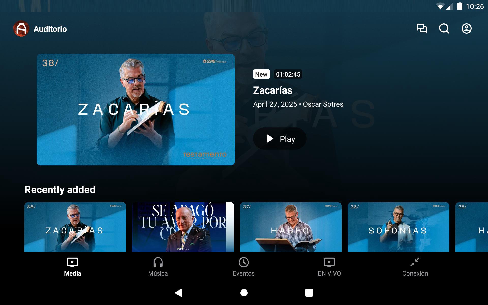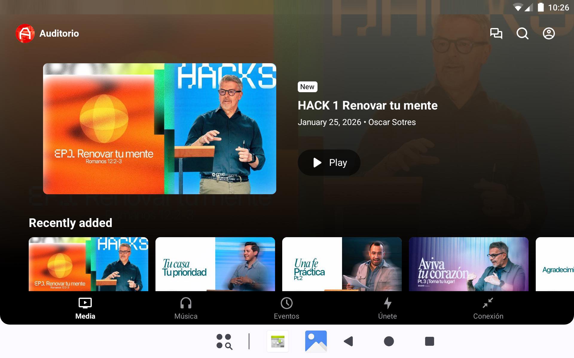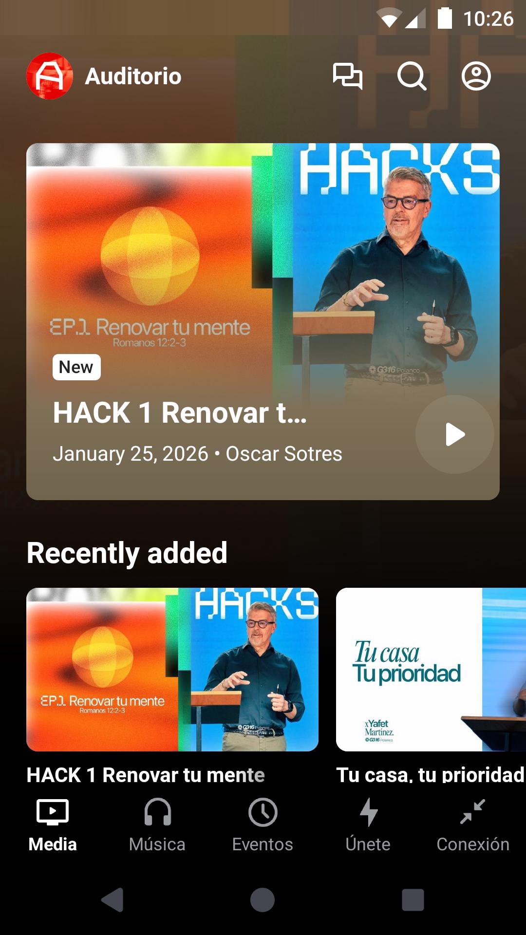 Con la app oficial AUDITORIO podrás mantenerte conectado con G3:16 Polanco en todo momento. En esta aplicación podrás: • Ver o escuchar predicaciones anteriores en nuestra biblioteca completa • Transmisión en vivo de las predicaciones y eventos cuando estén disponibles • Acceder fácilmente a todo el contenido actualizado AUDITORIO es la aplicación oficial de G3:16 Polanco.