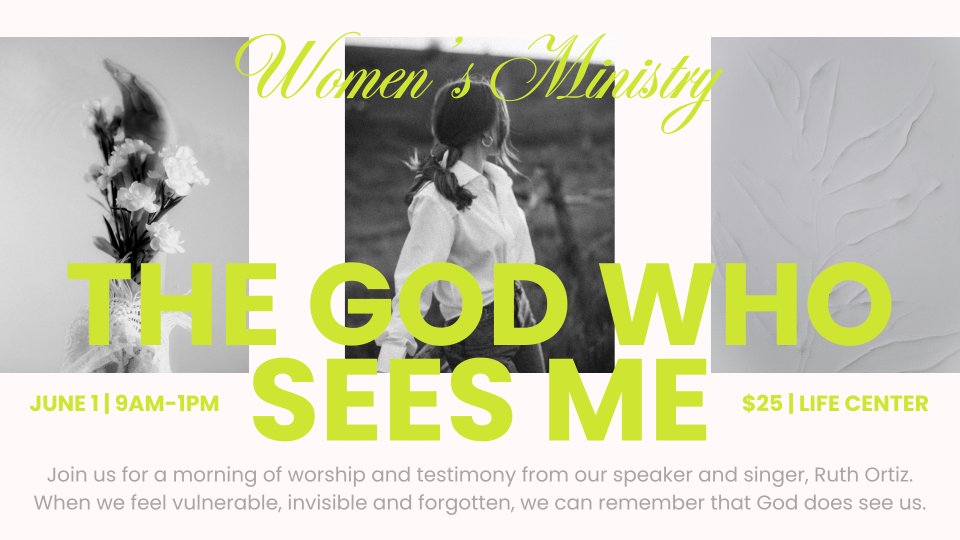 Únase a nosotros para una mañana de adoración y testimonio de nuestra oradora y cantante destacada Ruth Ortiz, quien recientemente lanzó su segundo álbum "Clean" a través de Daywind Studios en Nashville, TN. Cuando nos sentimos vulnerables, invisibles y olvidados por los demás, podemos recordar que Dios sí nos ve. Él es testigo de nuestras luchas y viene a nuestro lado. ¡Ven y disfruta de la poderosa voz de Ruth y su extraordinario testimonio! El costo es de $25 + tarifa de procesamiento (incluye almuerzo).