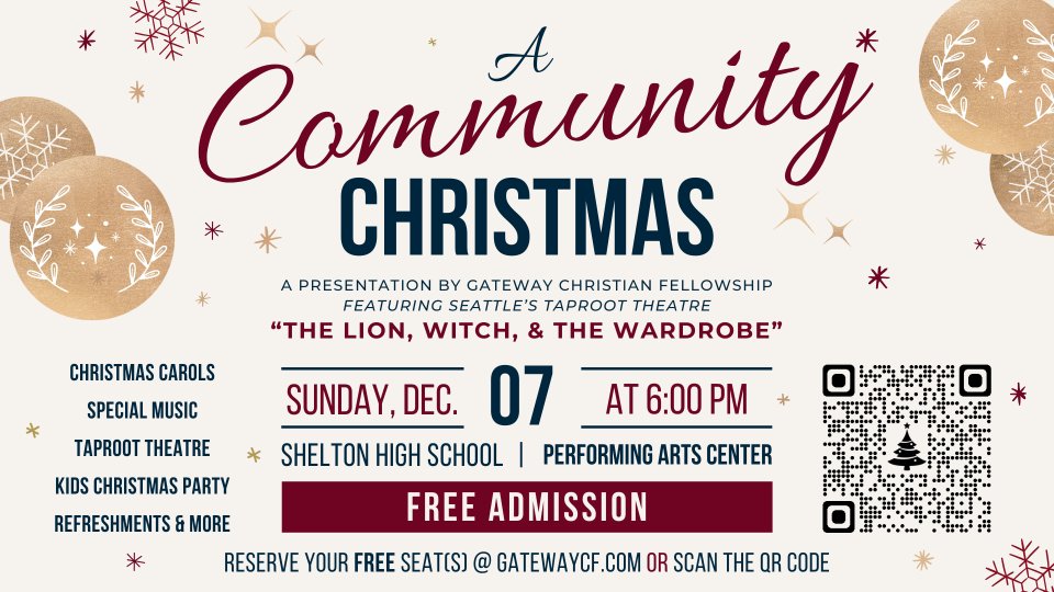 Please register and let us know how many are coming! It's going to be an amazing evening, and we want to make sure we have enough refreshments, Kids Christmas Party helpers, and enough seats for everyone! Join us for a festive evening of Christmas Carols, Special Music, "The Lion, Witch, & the Wardrobe" Theatrical Performance by Seattle's Taproot Theatre, Kids Christmas Party (2 years old - 5th grade | Crafts, Face Painting, Games, Snacks...), Refreshments, & More... Doors open at 5:30pm Program begins at 6pm See you there!