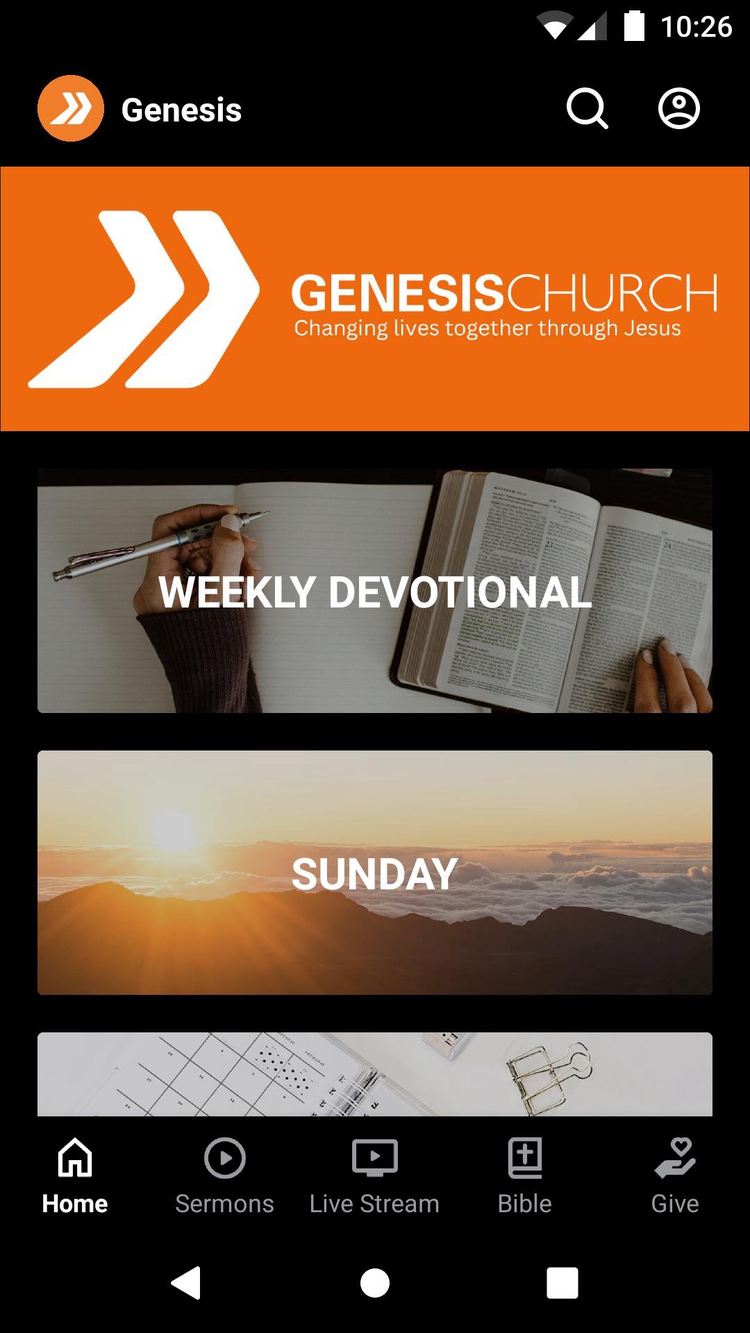Welcome to the official Genesis Church app! Check out all the great content and share it with friends. For more information about Genesis Church, please visit: http://www.genesispeople.com/ The Genesis Church app was developed with the Subsplash App Platform.
