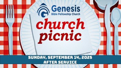 Join us THIS Sunday, September 14 after service for our GENESIS BIBLE FELLOWSHIP Annual Church Picnic under the Big Top. Food, Fellowship. Games, even a football game. This Sunday, September 14, 2025 at Genesis. Families with school aged children please make sure you attend.