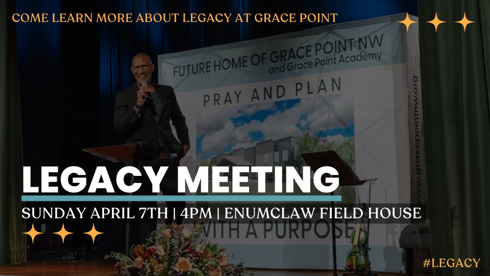 As we embark on a new year, we would like to invite you all to a special Legacy event on Sunday, April 7th at 4 pm at the Field House! This event is open to all current Legacy Team members and anyone else who would like to learn more about the vision and purpose of Legacy at Grace Point.