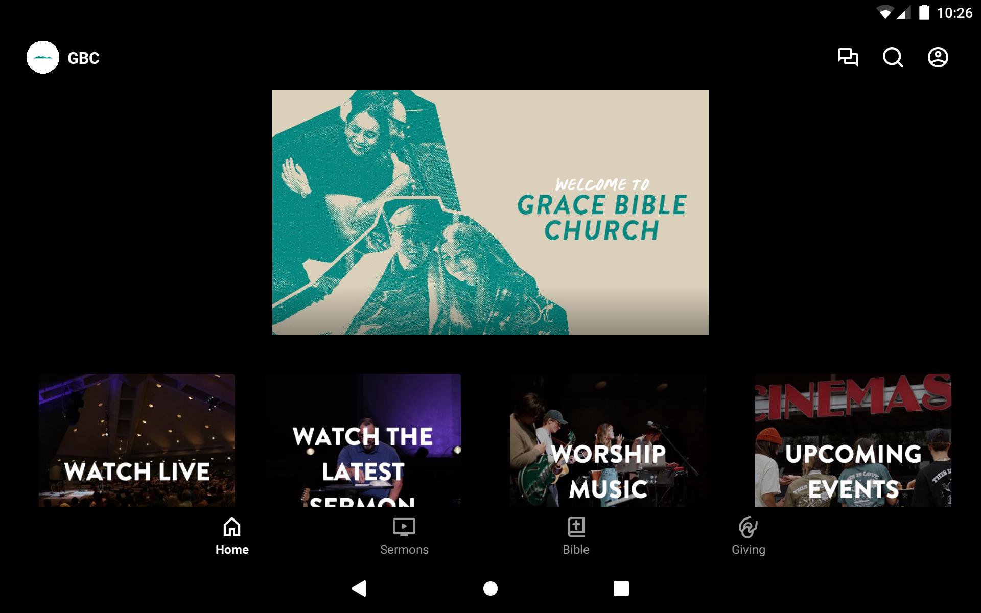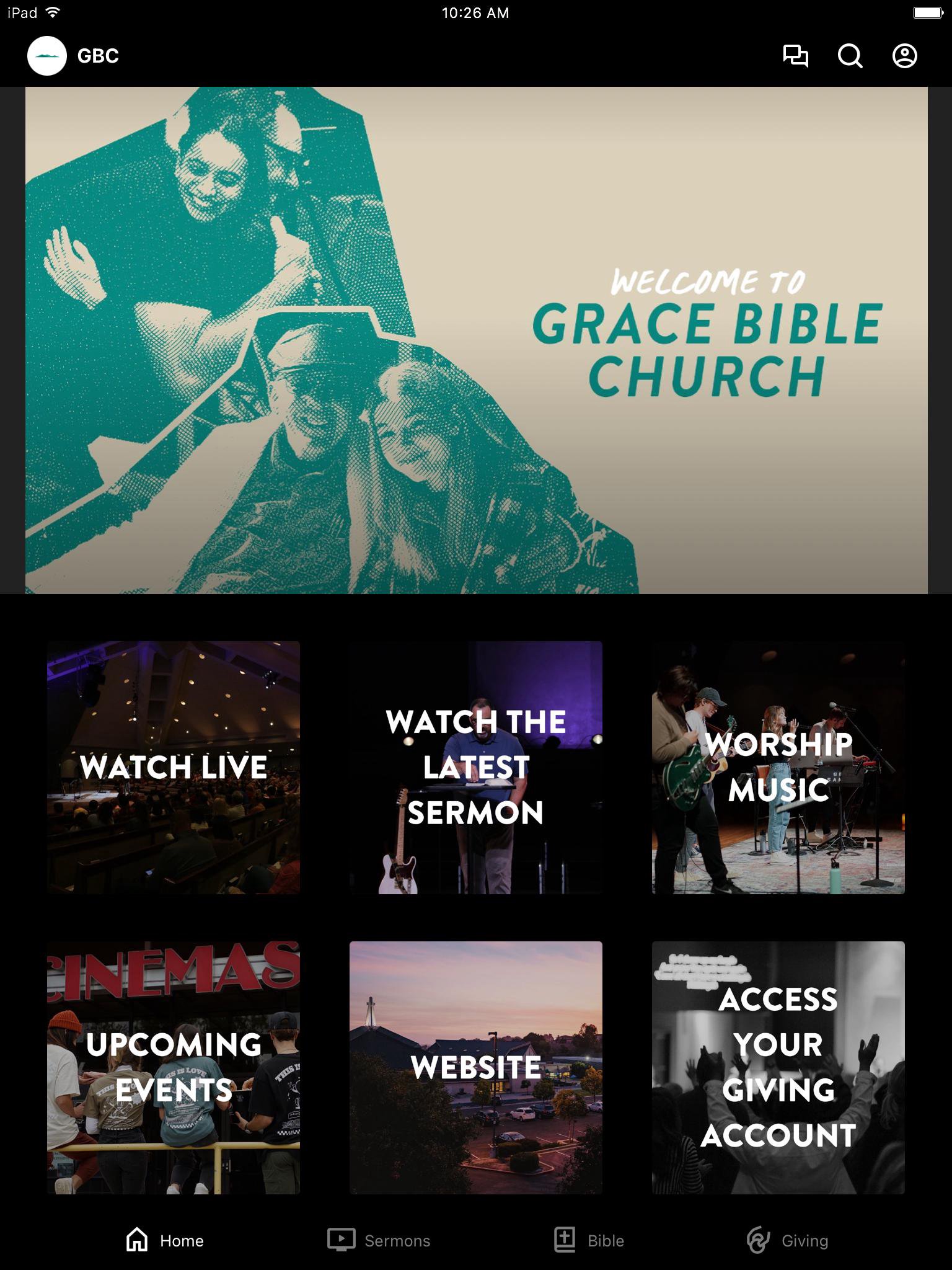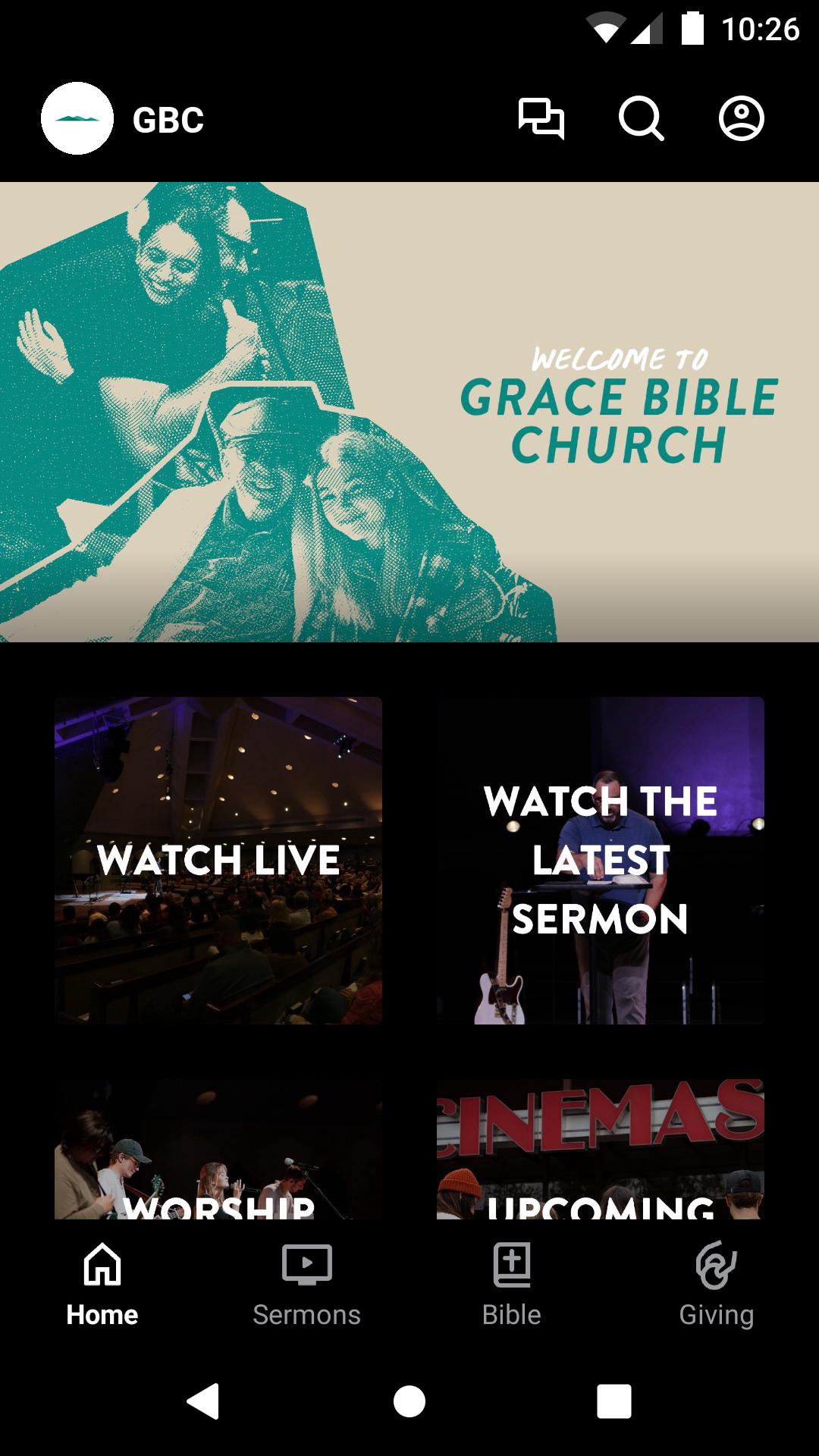 Our own Grace Bible Church app will help you grow and stay connected with everything that is happening at our church. You can watch or listen to sermons and worship music, join a group for all ages and stages, sign-up for upcoming events and opportunities to serve, and give online. Grace Bible Church exists to empower a movement of people to live and love like Jesus.