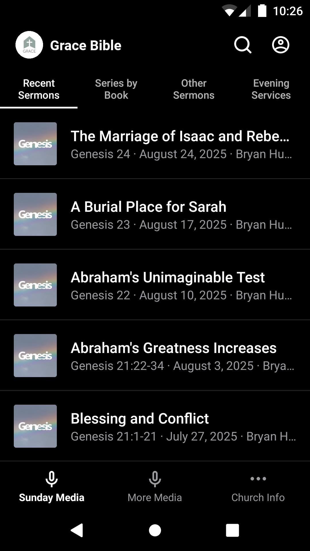 Welcome to the Grace Bible Church App. Download sermons, study notes, find out about upcoming events - and more! And once you've enjoyed it, you can share it with your friends via Twitter, Facebook, or email. For more information about Grace Bible Church, please visit gbcmt.org The Grace app was developed with the Subsplash App Platform.