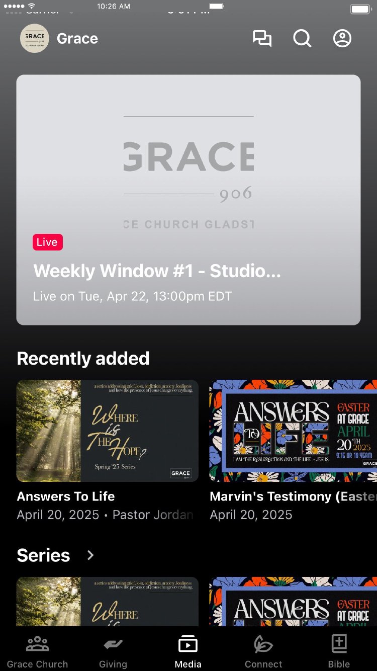 The Grace Church app features powerful Biblical content from Grace Church in Gladstone, Michigan. The Grace Church App allows you to join us LIVE Sunday mornings, enjoy a library of Bible teaching, receive details and register for upcoming events, and access news from the Grace Church community. The app also features resources for discipleship and growing in your walk with Jesus. Grace Church is a fellowship of believers in Gladstone, MI. Located on beautiful Lake Michigan in the Upper Peninsula, our desire is to know Jesus and make Him known by connecting with one another through the Word, worship, and in outreach to our community. Special Features: - Listen to & share any archived sermon - Take notes in app & return to saved notes to continue note taking - Free Digital Bible - Message your life group, bible study, or prayer group all in the app! - Give - Submit Prayer Requests For more information about Grace Church | Gladstone, Michigan, please visit http://grace906.com. After you have enjoyed the app, be sure to share it with others!