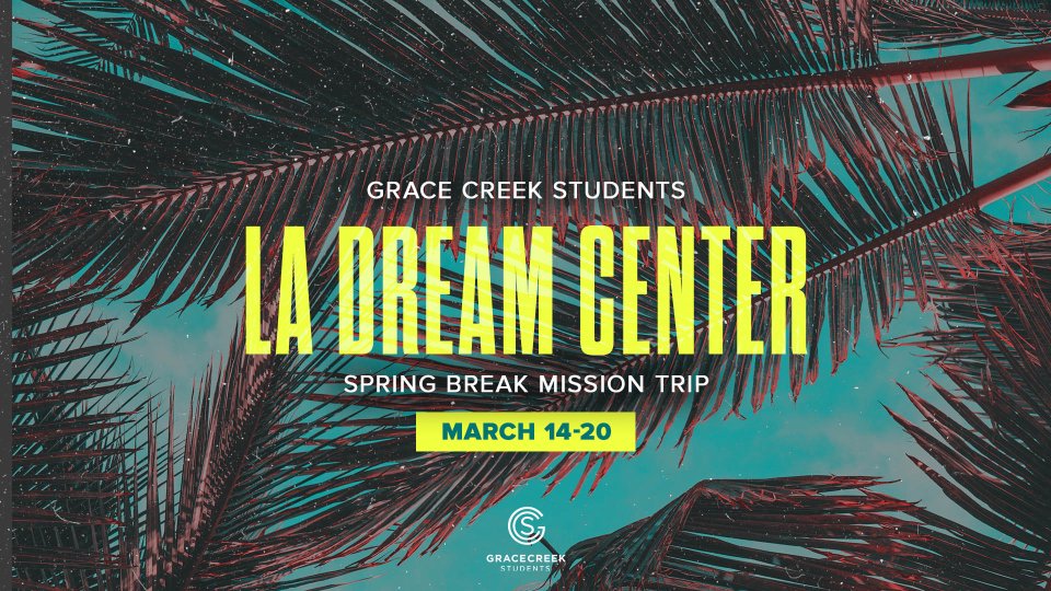 Dates: March 14-20, 2022 Leaders: Pastor Seth Doré and Bailey Cordero Team Members: Students 15 years old and up - with parent permission Cost: $1,500 About this trip: Grace Creek Students are going on a mission trip to the Los Angeles Dream Center March 14 - 20, 2022. At the LA Dream Center, we will have the opportunity to be a part of many of the life-changing outreaches that take place daily. From playing with neglected kids in under-resourced neighborhoods to handing out food and other necessities to those experiencing homelessness, we will get to play a role in bringing hope and help to the broken of Los Angeles. Apply today and we will resource you to raise the funds, prepare spiritually through a small group, and have an amazing time as we serve Jesus and others. Accommodations/Meals: During your stay at the Dream Center, you will share a dormitory room with 6 to 18 people. None of the rooms have showers, but most have attached bathrooms. Community showers (one for men and one for women) are located on your floor. There is no Wi-Fi available on campus. • 24 hour security • Breakfast, lunch, and dinner included • Housekeeping • Linens and towels included • Common room (refrigerator and microwave available) What is Covered? Roundtrip airfare from DFW to LAX, all lodging and transportation costs, all meals, and a trip t-shirt. Please bring spending money to cover souvenirs, personal items, and additional snacks/meals/drinks you might like to purchase in the airport or during the trip. Fundraising Deadlines: $150 – 11/1/2021 $750 –12/27/2021 $1,125 – 1/24/2022 $1,500 – 2/14/2022 We will provide all fundraising supplies and an online fundraising platform for you as part of your trip cost. Please note that deadlines are not flexible. All payment amounts must be made by posted date to retain your place on the team. The trip cost is tax-deductible, but funds are non-transferable and non-refundable. Application Process: Once you fill out your application it will be reviewed within 24 hours. You will receive an email with detailed next steps. You and your parents or guardians will then be invited to a meeting with the missions department to go over consent forms and receive your fundraising supplies. Once that is complete, you can start fundraising immediately. Team training is a vital part of your mission trip experience and is required to be a part of the team. You will be given small group meeting dates at your initial appointment and will be required to attend at least 80% of the meetings. We have found that team members who prioritize meeting attendance are far more prepared and have a much more fulfilling mission trip. Applications are due November 1st.
