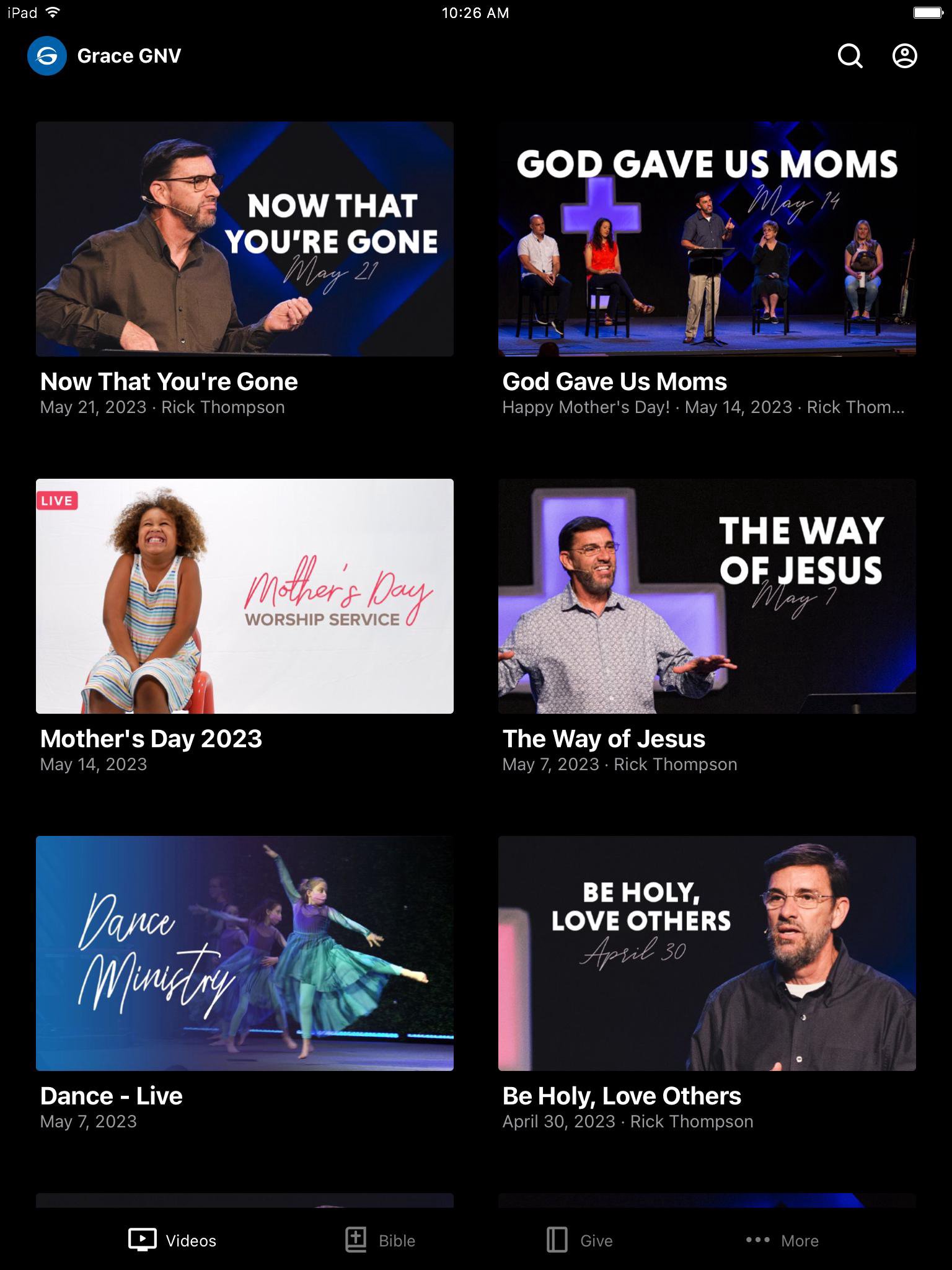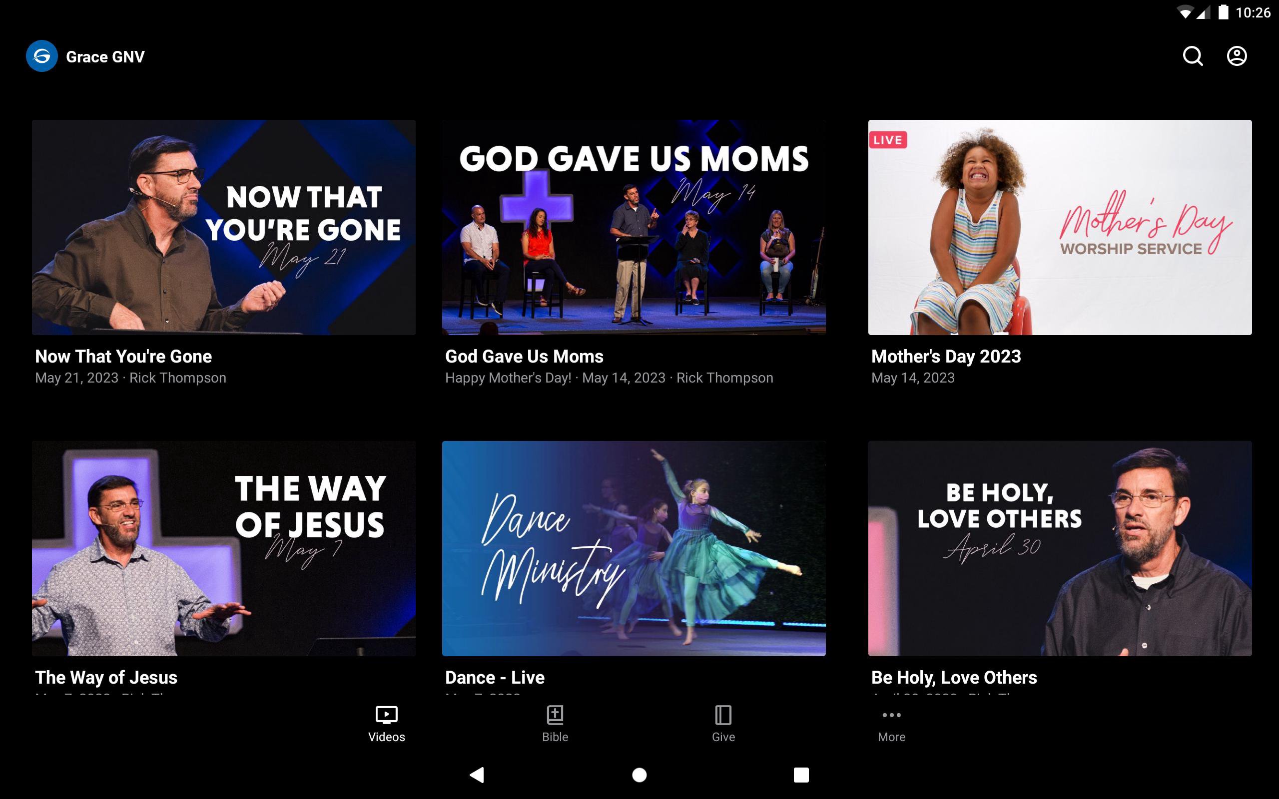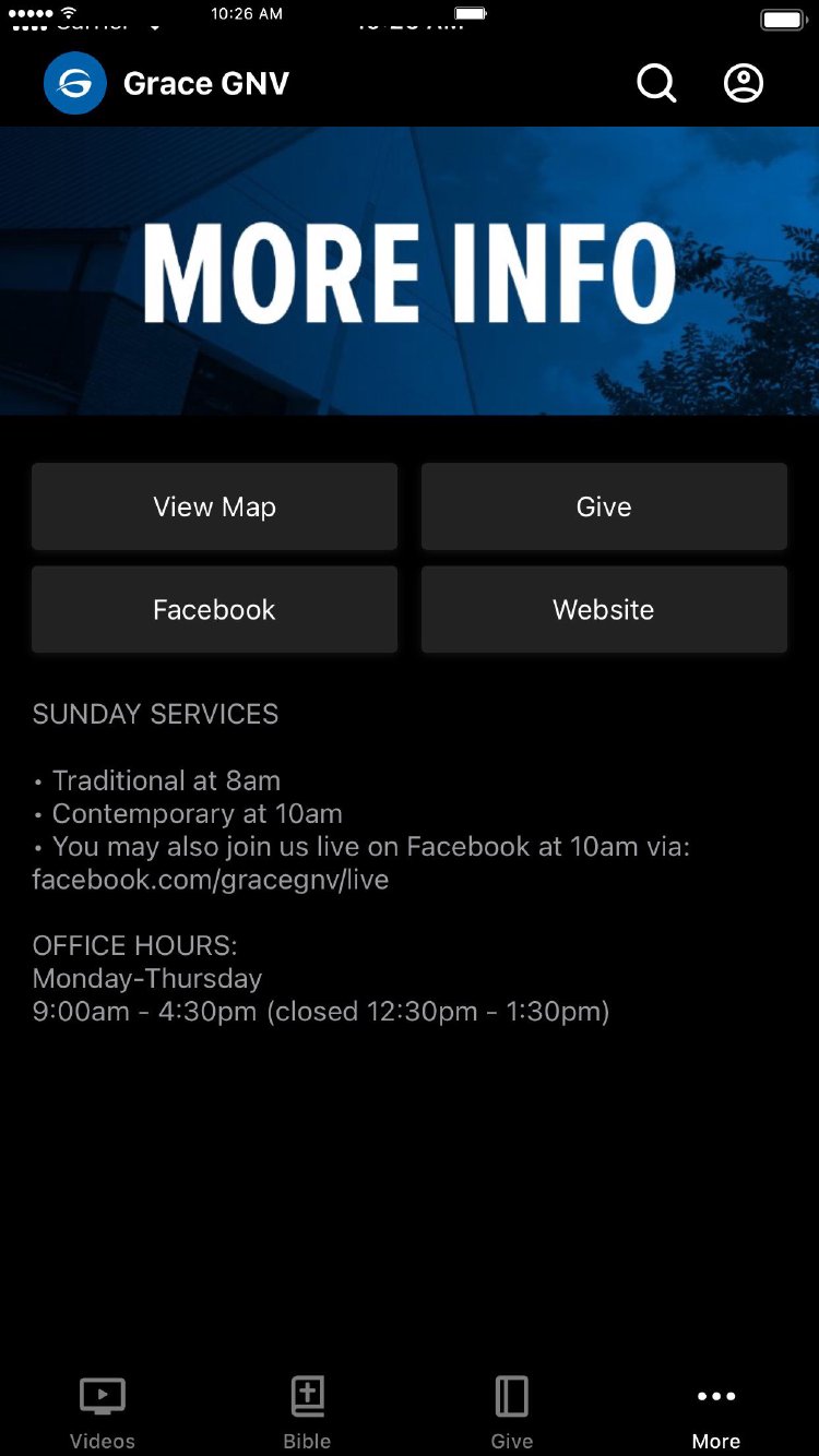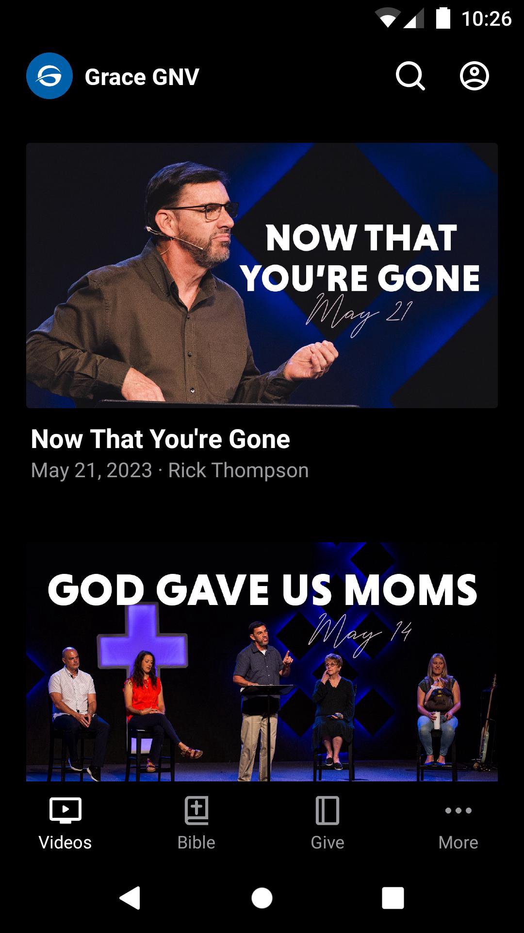 The official Grace Church App provides easy access to messages, events, and more. FEATURES - Stream and and download sermon video and audio of Sunday messages. - Find Event dates, times, and locations. Quickly add them to your mobile calendar. - Learn more about ministry opportunities and ways to get involved. This app requires mobile Internet or Wi-Fi connection. For more information about Grace Church, please visit: http://www.gracegnv.org/ The Grace GNV App was created with the Subsplash App Platform.