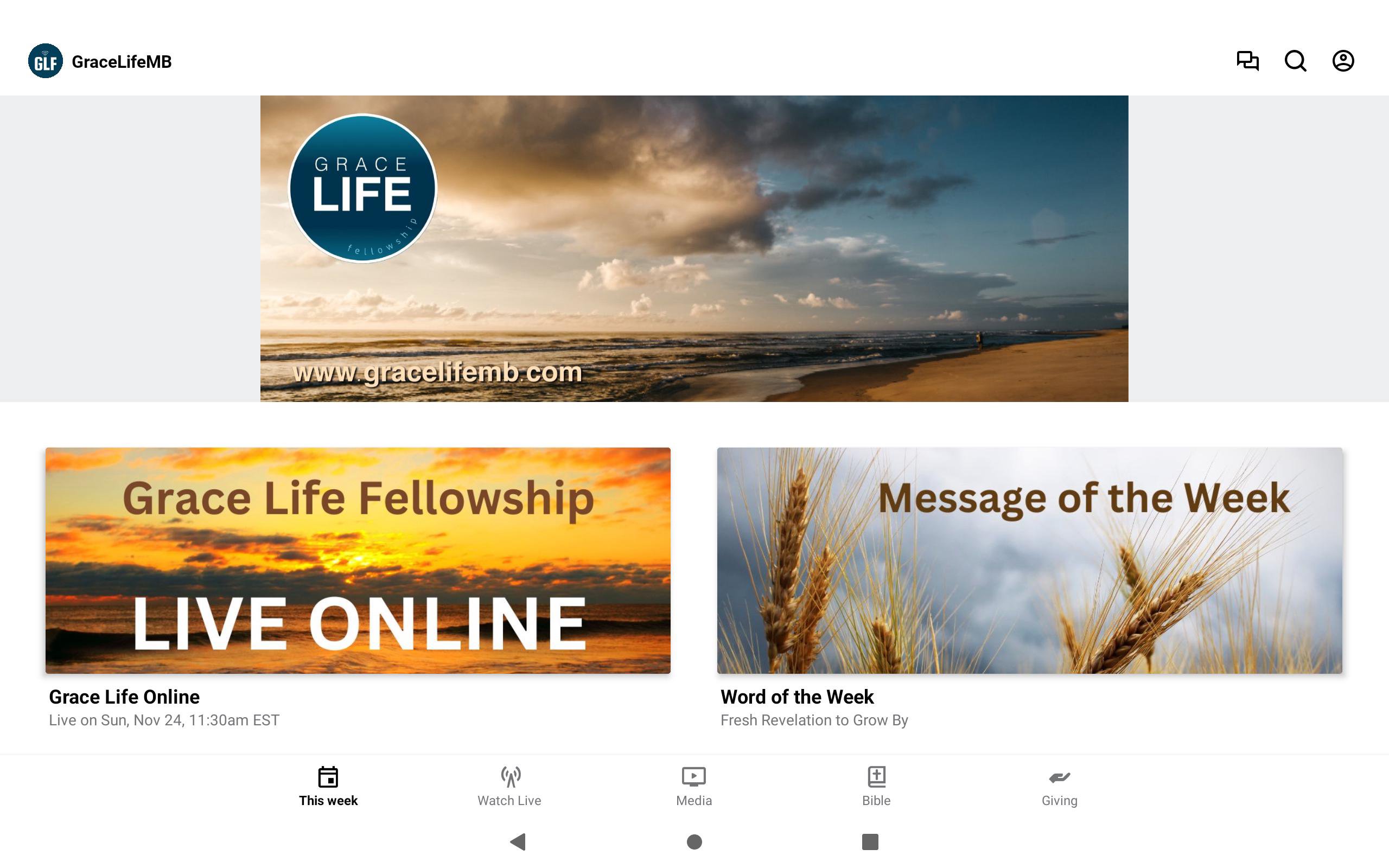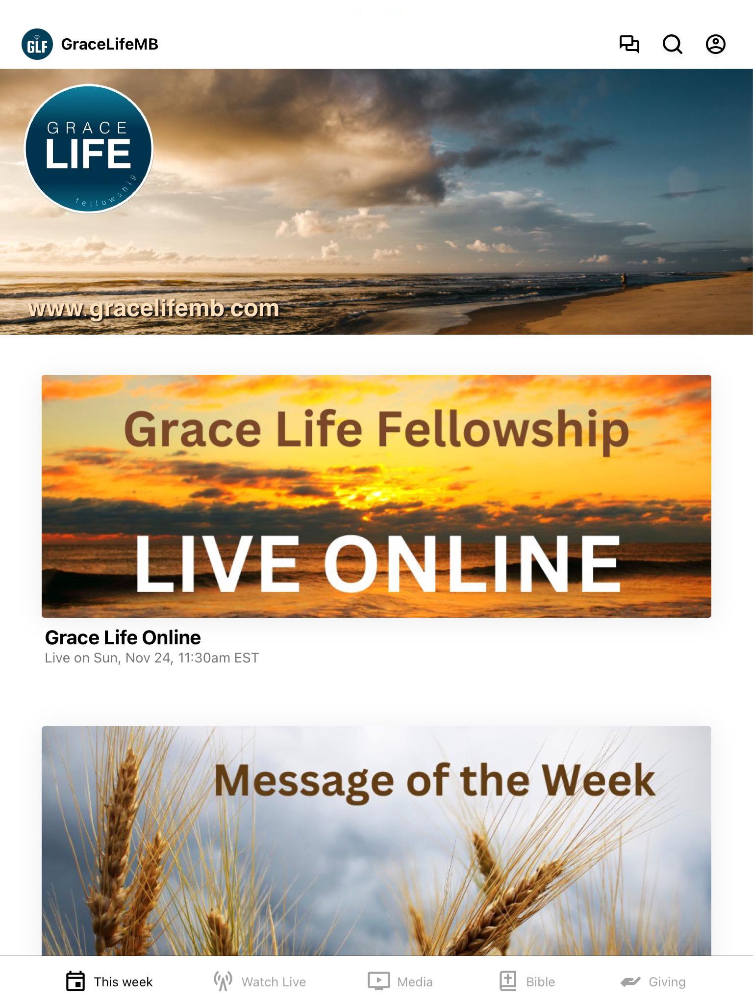 The vision for this app is to spread the Good News of Jesus Christ to all who own a smart phone. This app will not only help you to stay connected to Grace Life fellowship in Myrtle Beach, but will help you to stay connected to many other grace based ministries all around the world. Our vision for this app is for it to be a treasure trove of resource that will help you to grow and mature in Christ through hearing the inspired Word of Life. With this app you will be able to watch or listen to past messages; stay up to date with push notifications; share your favorite messages via Twitter, Facebook, or email; and download messages for offline listening. We encourage you to not only download the app but to share the app with everyone .Its a great way to spend the good news through technology