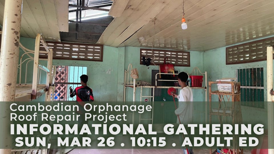 March 20, 2023 Dear Church family, In January of this year, 7 of us from Grace of Christ visited the Home of Love orphanage as part of a mission trip to Cambodia. This orphanage was founded in 2002 to serve children who were orphaned and/or homeless as a result of the violence in Cambodia during the Pol Pot regime and the resulting fallout in its aftermath. Since that time, it has served hundreds of children and raised them based on Godly principles. As a result, many Cambodian children have reached adulthood with loving care, spiritual and academic educations, and bright hope for the future. The orphanage was originally funded by the support of an American, but this individual died in 2019, and there has been no consistent source of support since. Grace of Christ Mission Ministry provided some support from 2009-2017. Home of Love has had a strong relationship with YWAM Battambang for over 10 years. Roof $7,016.00 Ceiling $1,266.50 Room Division $2,314.80 Electrical $748.50 Total $11,345.80 As the rainy season is eminently upon Cambodia, Home of Love Orphanage has an urgent need. The roof of the dormitory where the children sleep is in desperate need of repair. Like many projects in your own home, when you fix one thing, problems in adjacent areas surface. The founder of the orphanage, Vanny Ouch, has provided the following solid bid to repair the roof, ceiling, and provide more privacy for the children. When we visited the orphanage, we were impressed by how the children were well cared for, happy, confident, and had talents that they learned at the orphanage. They led us in worship and even have formed their own worship band! These skills will go with them well beyond their life in the orphanage. You are invited to join us on Sunday March 26th, in the Adult Ed Room, at 10:15 am, to come hear of the need, ask questions, and determine if you would like to join us in meeting the needs of this orphanage. It would not only be a blessing to the orphanage, but to our church as well. We can say, "We saw a need and fixed it"! Thank you for considering support of Home of Love. If unable to attend the meeting but would like to donate to the repairs of the orphanage, you can write a check to: Grace of Christ Church, 9 S 8th Avenue, Yakima 98902. Please write "Home of Love" in the memo section of your check. Yakima Friends of YWAM Cambodia, Mark & Debbi Baldwin Jerry & Cathy Simons Jean Schiewe Eric & Nancy Gustafson