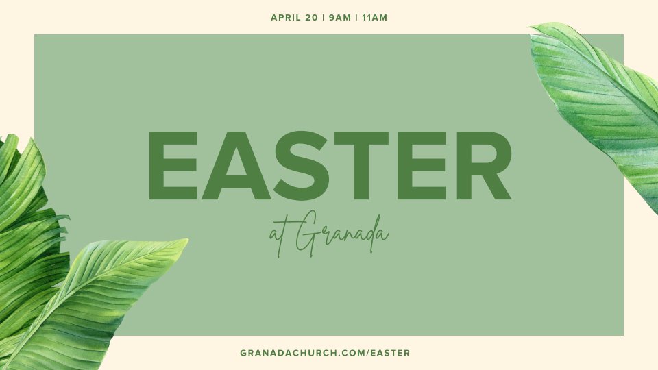 Experience what it’s like to enjoy God through gospel community at our Easter services! Details: • Two identical services at 9 & 11am • Extraordinary music from our choir and orchestra • Family photo area • Special GranadaKids! activities at 9 & 11am (RSVP at granadachurch.com/kids) • Grand Easter Egg Hunts after each service Everyone Belongs Here :)