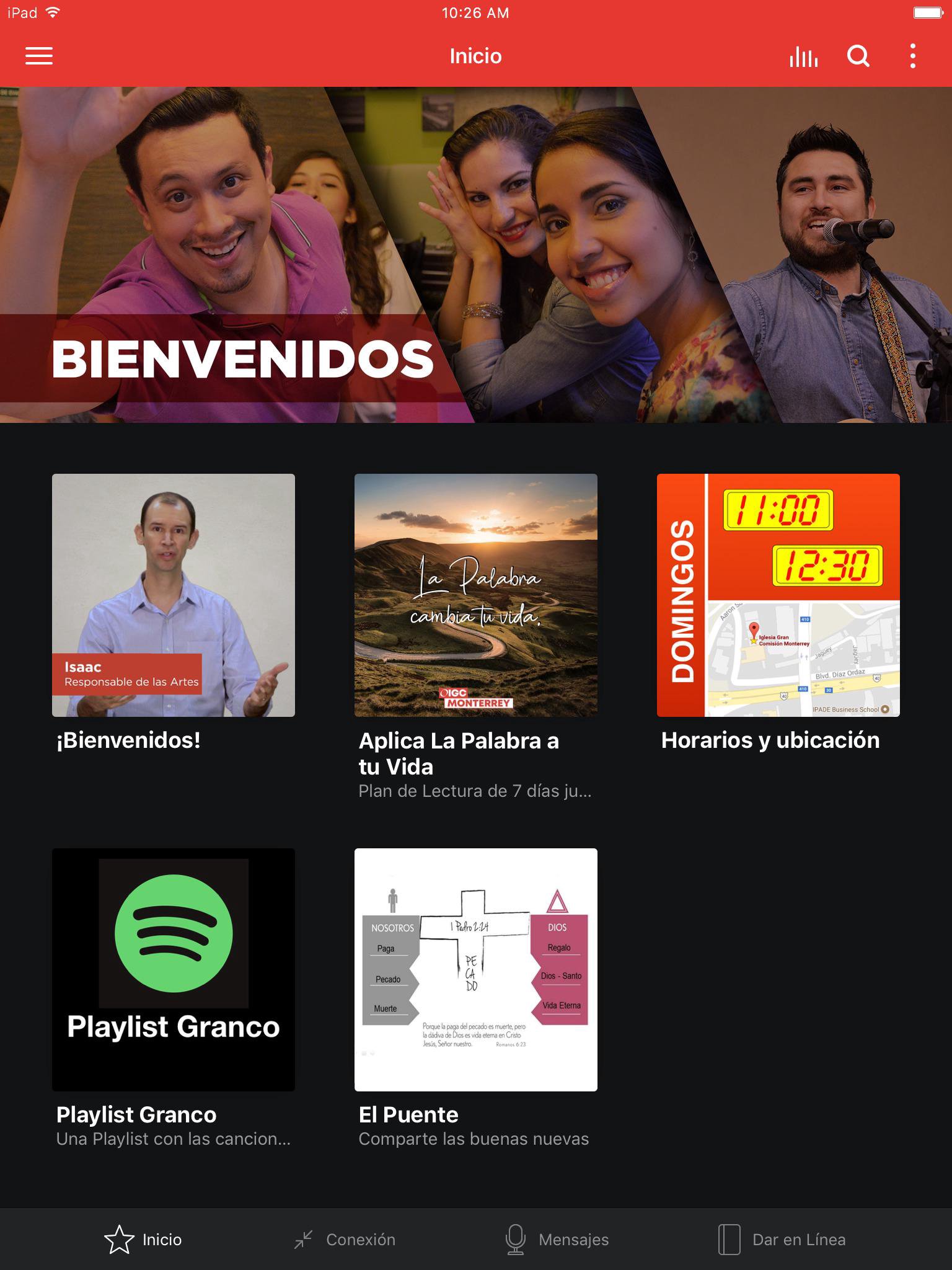 Conéctate con nosotros, nuestros mensajes, grupos y mucho más.