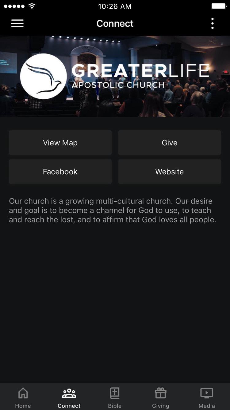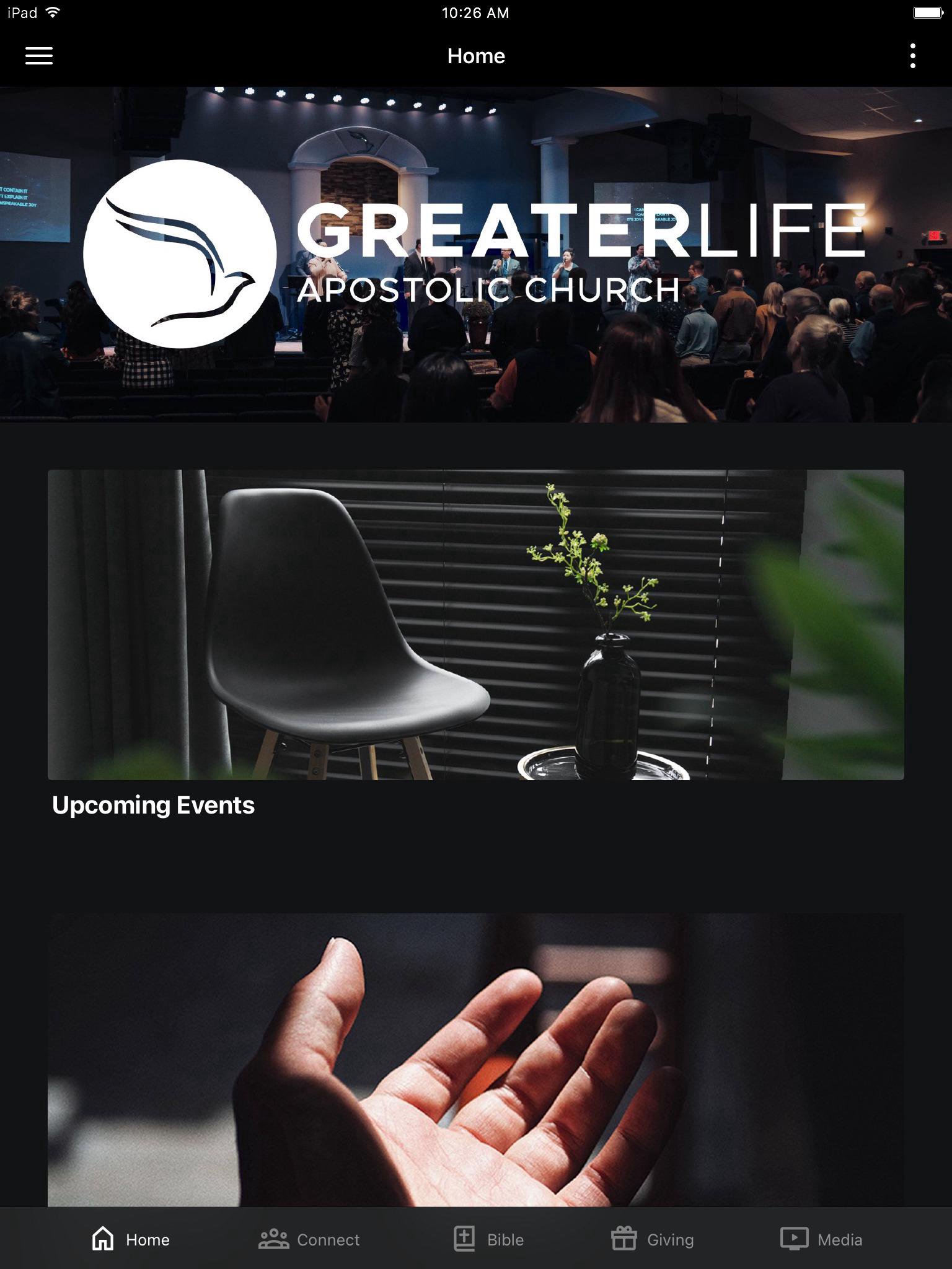 This app will help you stay connected with the day-to-day life of Greater Life Apostolic Church. With this app you can: watch or listen to past messages; stay up to date with push notifications; share your favorite messages via Twitter, Facebook, or email; and download messages for offline listening.