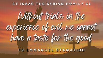 Father Emmanuel discusses St Isaac the Syrian: Homily 61 - "Without trials in the experience of evil we cannot have a taste for the good."