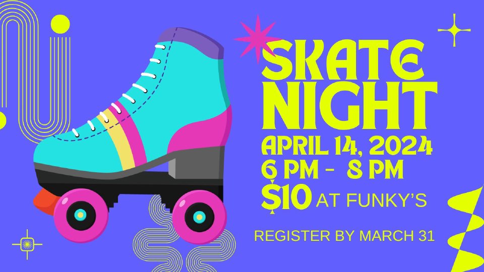 Make sure to mark your calendars for an exciting afternoon of good old-fashioned family fun! Join us for skating, games, and fellowship at Funky's Skate Center on April 14th from 6 PM to 8 PM. The admission fee to skate is only $10, and it's free for everyone who wants to watch. Don't miss this opportunity to have a wonderful time with your loved ones!