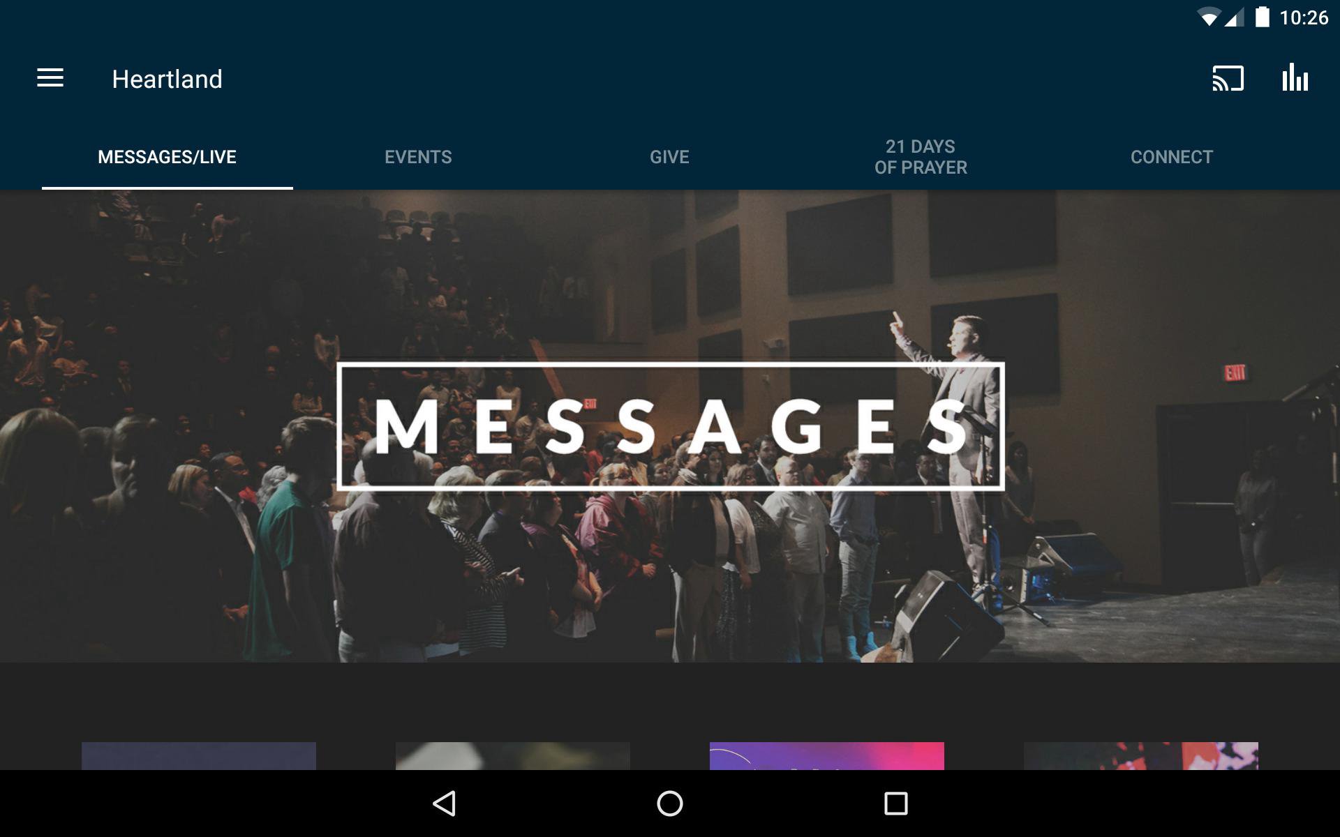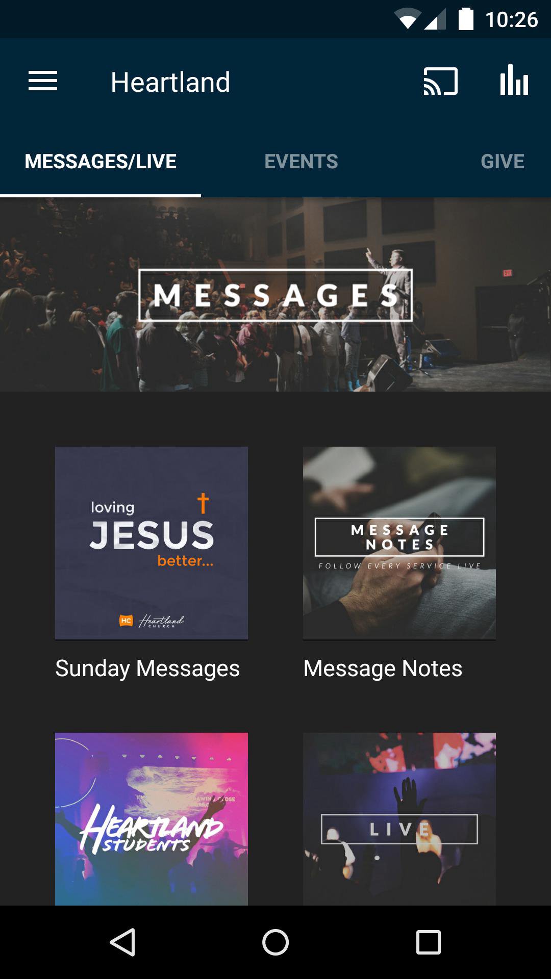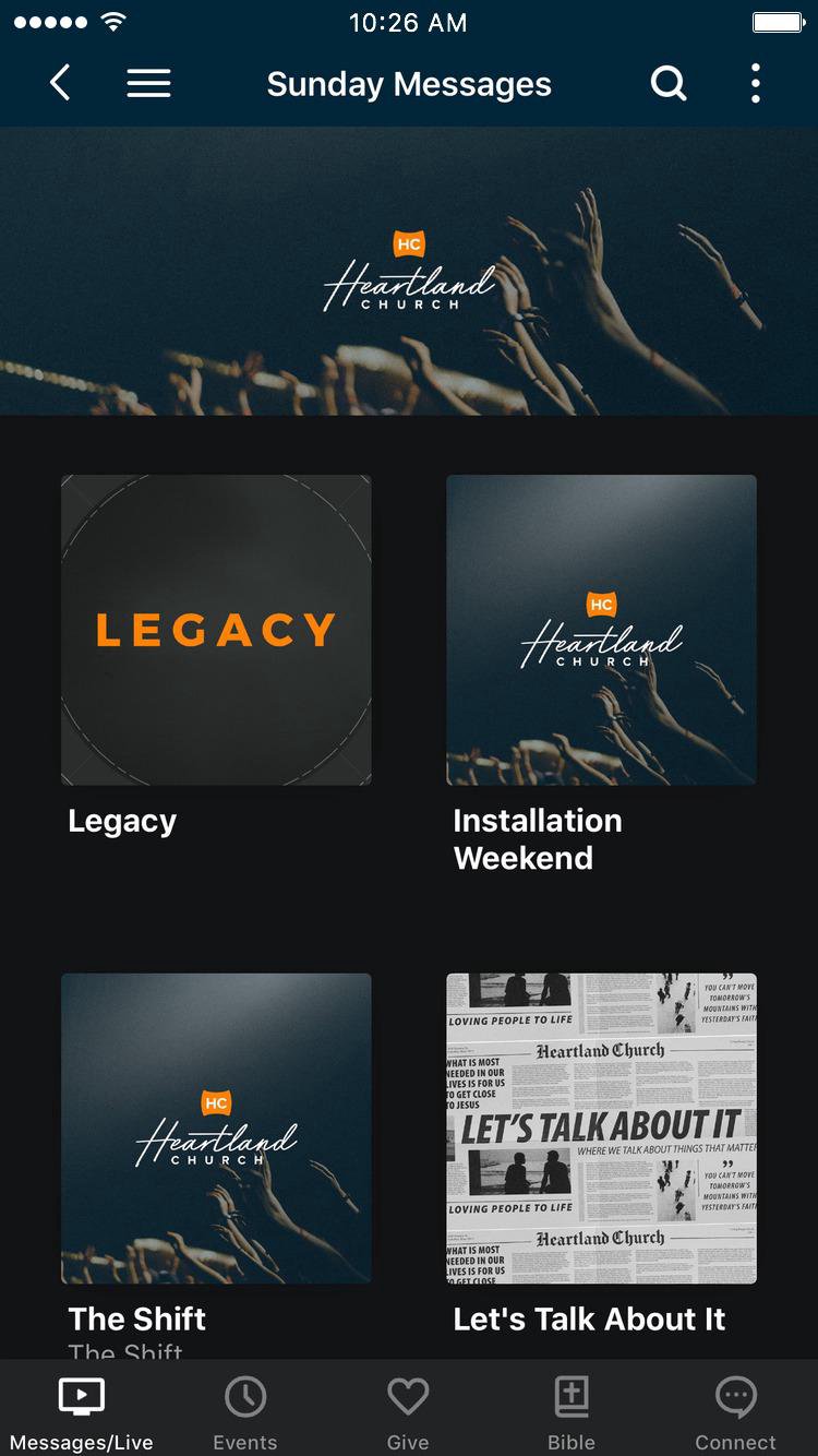 Welcome to the official Heartland Church App! This free mobile app allows you to stay connected with church events, listen to weekly sermons, access mobile giving, and share with friends via Twitter, Facebook, and e-mail. For more information about Heartland Church, please visit us at www.theheartlandchurch.com. The Heartland Church app was created with The Church App by Subsplash