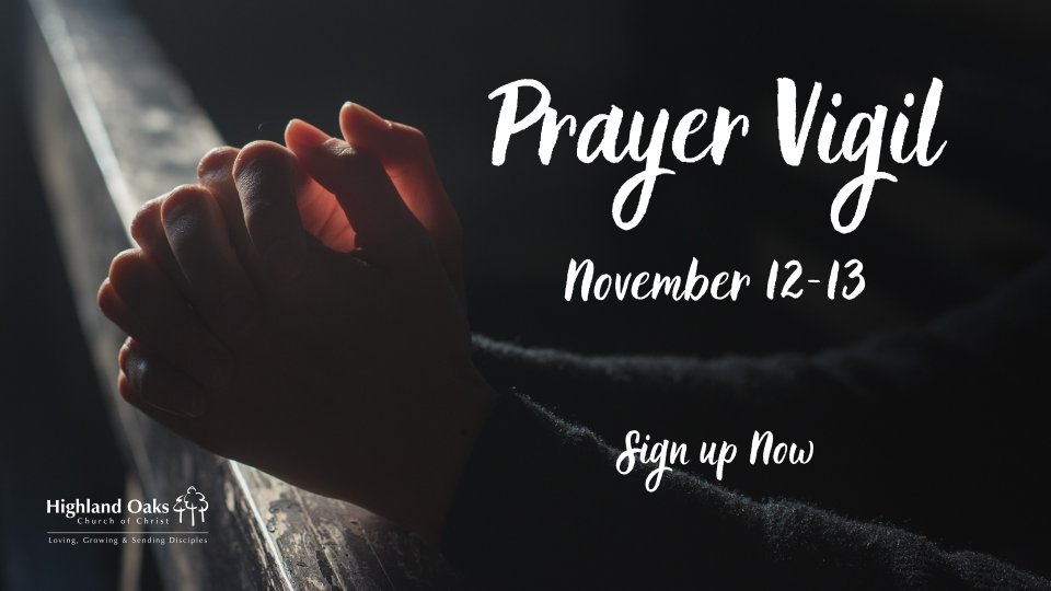As we lean into our commitment to grow as disciples in 2021, we invite you to sign up now to pray with us during our November 24-hour prayer vigil. For those who sign up, a list of prayer requests will be sent to you Thursday, November 11. The vigil will start on Friday, November 12 at 6pm and will end with the last time slot being Saturday, November 13 at 5pm. The vigil is completely remote.