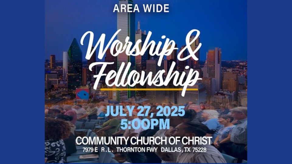 Come and join us at 5:00pm on Sunday, July 27 ,2025 at Community Church of Christ for an area-wide evening of Praise and Worship with Churches of Christ throughout the Dallas area. We will meet and worship God together, as well as get to know one another.