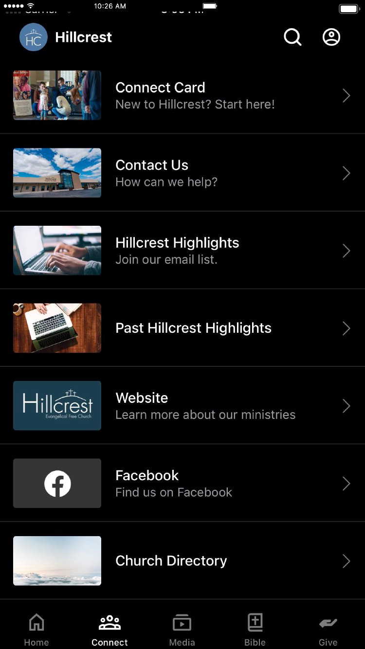 The official app of Hillcrest Evangelical Free Church. This app will help you stay connected with the day-to-day life of our church. With this app you can: watch or listen to past messages; stay up to date with push notifications; share your favorite messages via Twitter, Facebook, or email; and download messages for offline listening.