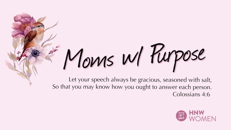Moms w/ Purpose is a place where you can find community, feed your soul, and receive support in your parenting journey. Join us as we explore God's best in the way we speak to ourselves and others. Enjoy engaging speakers, peer testimonies, small group discussions, activities and food!