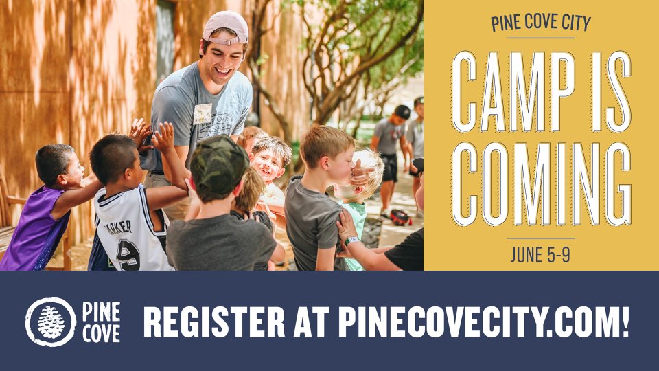 For kids who will complete kindergarten through 5th grade by the end of this school year! **REGISTRATION UPDATE AS OF 4/19/23: All spots for girl campers are currently filled with a long waitlist. There are still openings for boy campers who need a scholarship. If you would like to register a boy who does not need a scholarship, we encourage you to sign up on the waitlist as space may still become available. We’re loading up an incredible, jam-packed week of camp and bringing it to Houston Northwest Church June 5-9! We’ll be jumping, cheering, and singing each and every day, Monday through Friday, in the most incredible week of your child’s summer. From amazing counselors and hilarious skits to thrilling activities and awesome Bible studies, campers are sure to have a blast! Pine Cove City will meet on the HNW campus from 9 a.m. to 4 p.m. Monday through Friday. The cost for camp is $339. A $40 deposit is required to reserve a spot. Click here to apply for a scholarship. Questions about registration can be sent to the Pine Cove office at pinecovecity@pinecove.com or by calling 1.877.474.6326. Volunteer opportunities include hosting counselors and volunteers in your home, serving lunches, or serving as a camp nurse. Volunteer to Serve