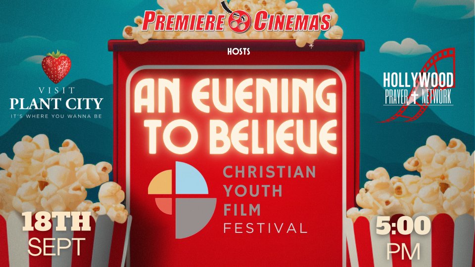 You are cordially invited to celebrate the Plant City, FL Christian arts and entertainment community with "An Evening to Believe"! Enjoy a night of faith, film, and community with the Christian Youth Film Society (led by director Joe Brown), Hollywood Prayer Network (founded by Karen Covell), and the newest HPN Local Plant City Chapter Director, Marcus Beaufils! This will be a fantastic evening celebrating the future of film with the FIRST EVER East Coast Christian Youth Film Festival event, as well as the LAUNCH CELEBRATION of the Hollywood Prayer Network's newest chapter, right here in Plant City! Come to dine and connect with fellow film lovers and the faith community. This is an evening that you will not want to miss!