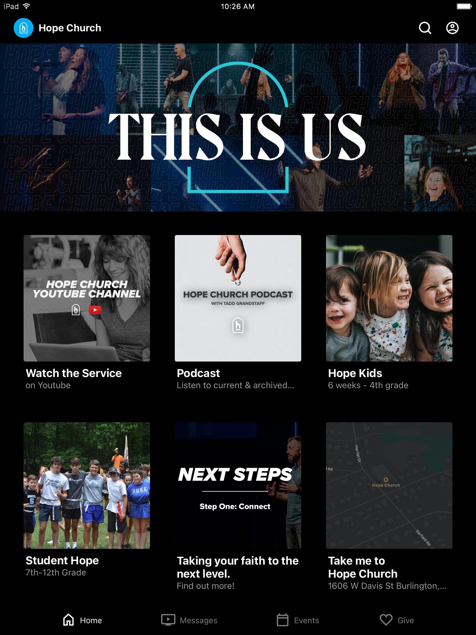 The Hope Church App offers mobile access to current and past messages from Pastor Tadd Grandstaff and other speakers at Hope Church. You will also have access to the official Hope Church website, social media sites, and various ways to connect with the ministries of Hope Church. Hope Church exists to do whatever it takes for all people to follow Jesus, grow with Jesus, and live for Jesus. For more information about Hope Church, please visit: http://www.hopechurchnc.com The Hope Church of NC App was created with the Subsplash App Platform.