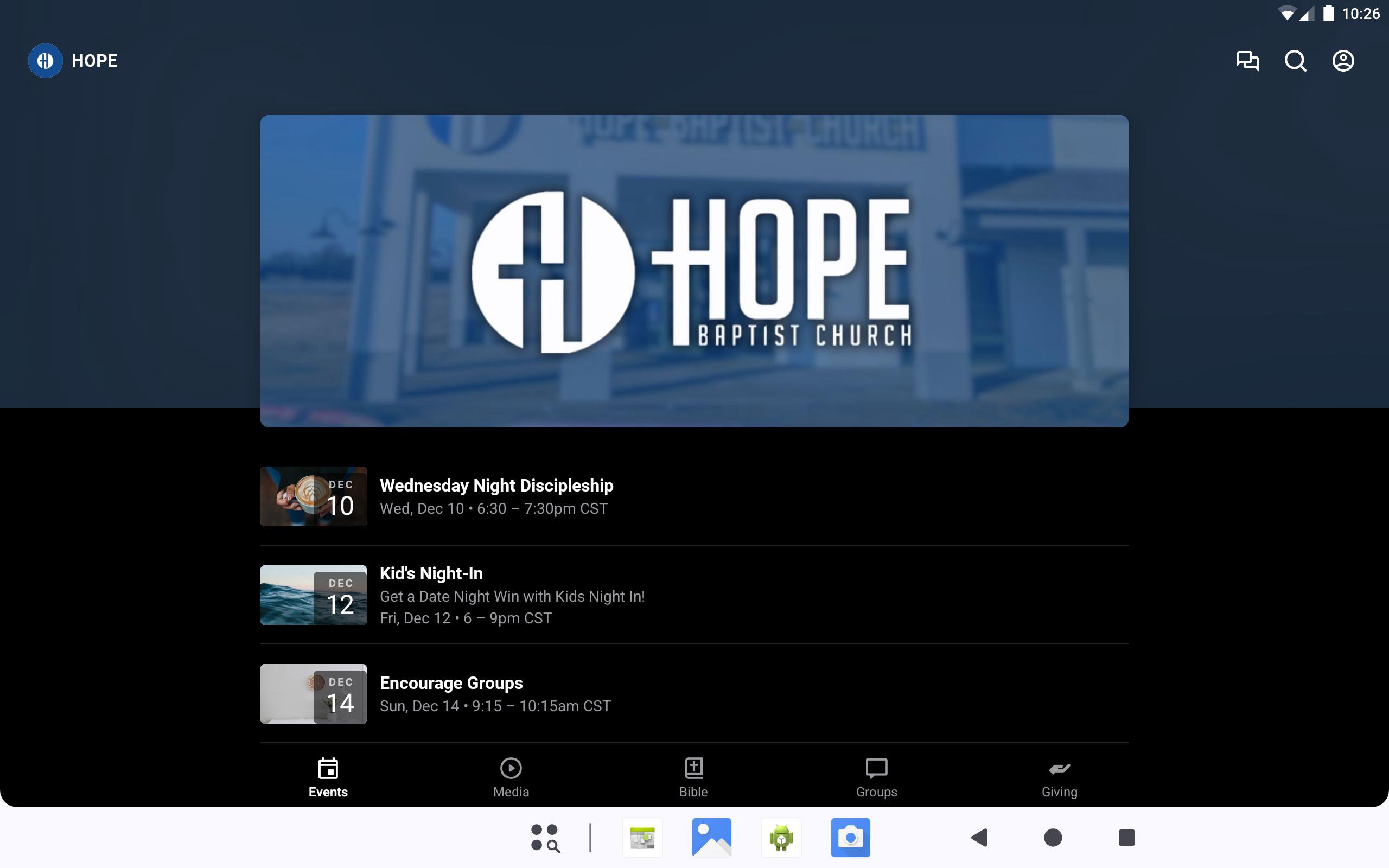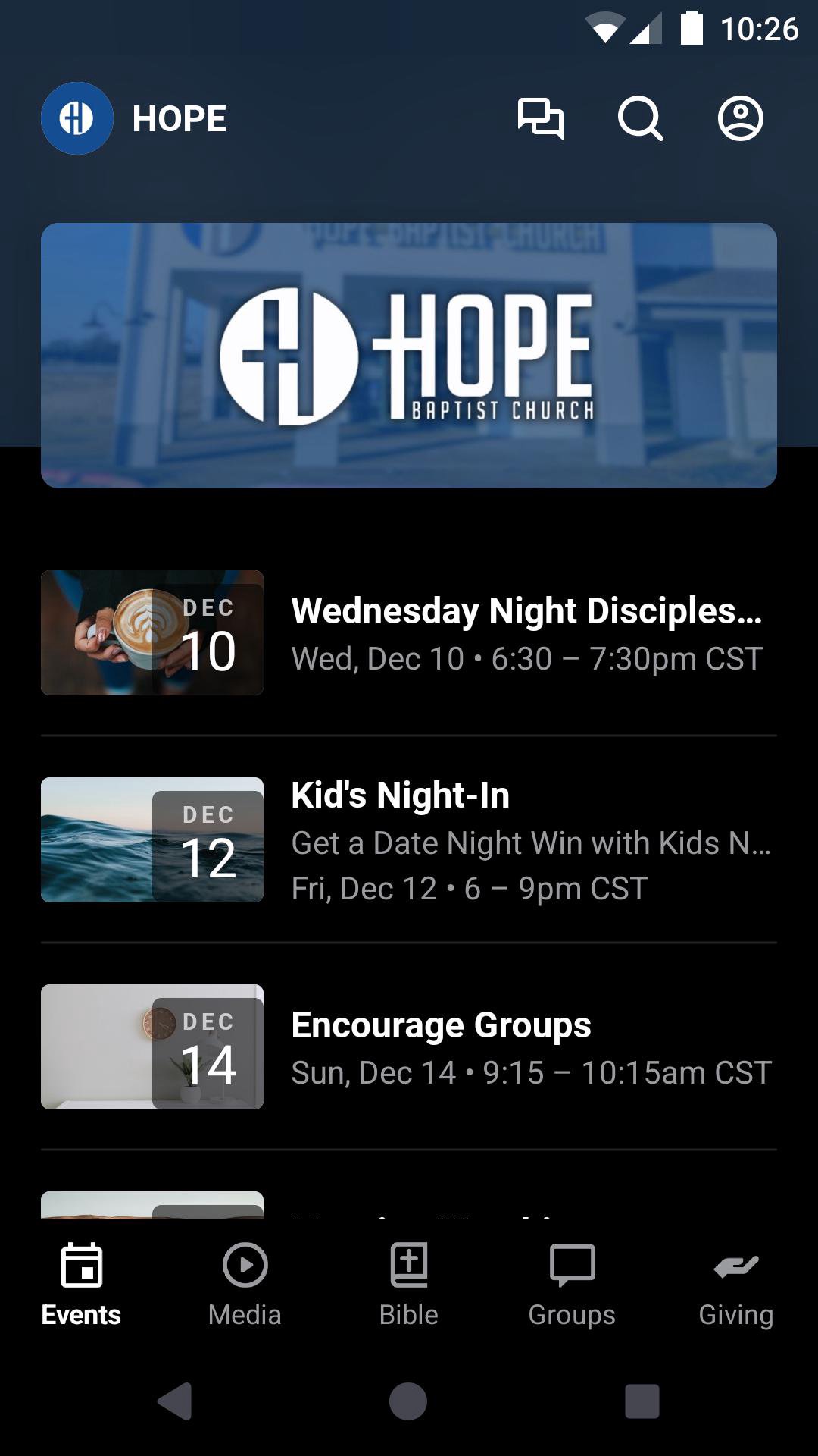 This app will help you stay connected with the day-to-day life of your church community. With this app you can watch or listen to past messages, stay updated with push notifications, read the Bible, message groups, view are calendar, give, and much more!
