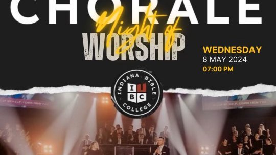 Join us on Wednesday, May 8th at 7pm for a night of worship with Indiana Bible College Chorale. We are looking forward to an amazing time together.
