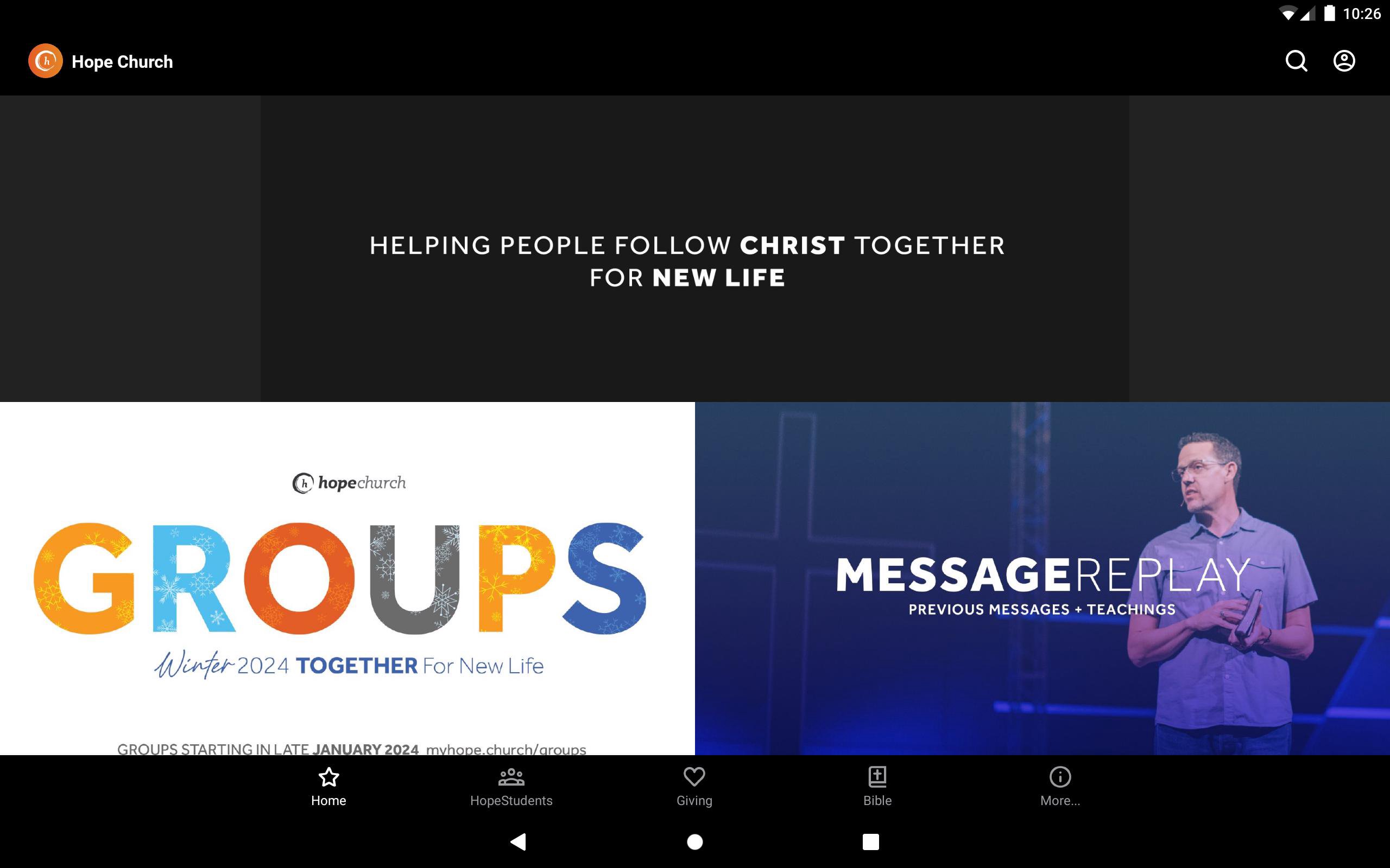 This app is packed with powerful content and resources to help you grow and stay connected. With the Hope Church App, you can: - Stream LIVE with us for church service - Watch or listen to past messages - Follow along with our Bible reading plan - Sign up for events - Read articles and blog posts - Request prayer and be inspired to pray - Stay up to date with push notifications - Stay connected socially through Instagram, Facebook and YouTube - Download messages for offline listening - Find the best next step for your faith journey