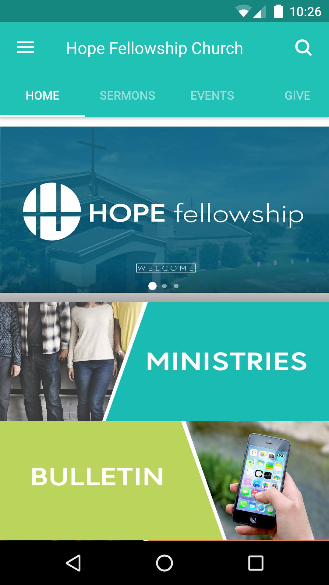 This app is packed with powerful content and resources to help you grow and stay connected with Hope. With this app you can: - Watch or listen to past messages - View the weekly bulletin - Give in a few easy steps - Get connected - Submit prayer requests - Sign up for events - Stay up to date with push notifications - Share your favorite messages via Twitter, Facebook, or email - Download messages for offline listening