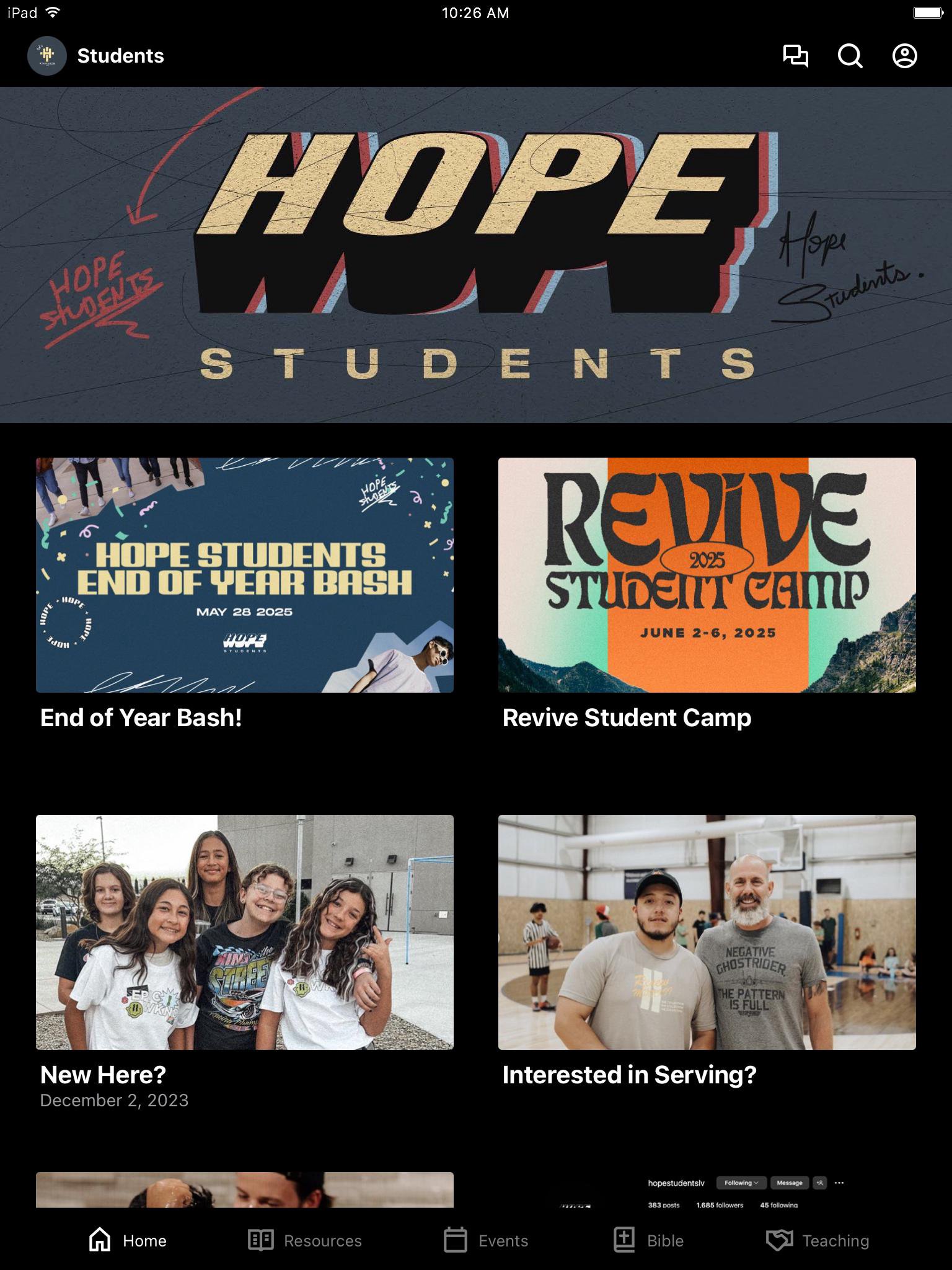 Welcome to the official app for Hope Students LV! This is the official app for Hope Students, the student ministry of Hope Church in Las Vegas, NV. With the Hope Students app, you’ll have easy access to the Hope Students calendar, content, resources, and much more. After downloading the app and enjoying the content, you can share it with your friends via Twitter, Facebook, Instagram, or email. You can also choose to receive notifications on your phone, keeping you informed and updated on events and any changes happening within the ministry. Hope Students exists to connect students to live the life of a Jesus follower. For more information about Hope Students, please visit: http://www.hopechurchlv.com/students