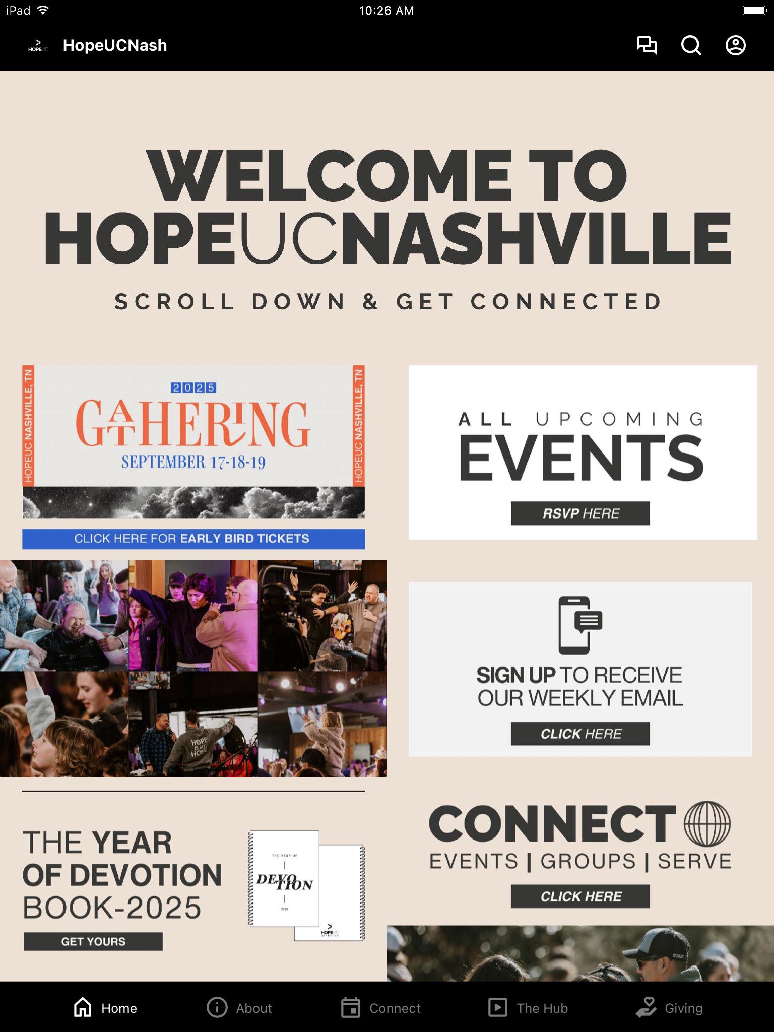 By God’s grace we pray that HopeUC will always be a body, a church, a family and a home that is defined by God’s presence. Worshipful, missional, prayerful, generational, creative, generous, thankful, authentic and completely passionate about people responding to the message of salvation. And with a shout that resounds through every part of our lives that HOPE is a person, and His name is Jesus.