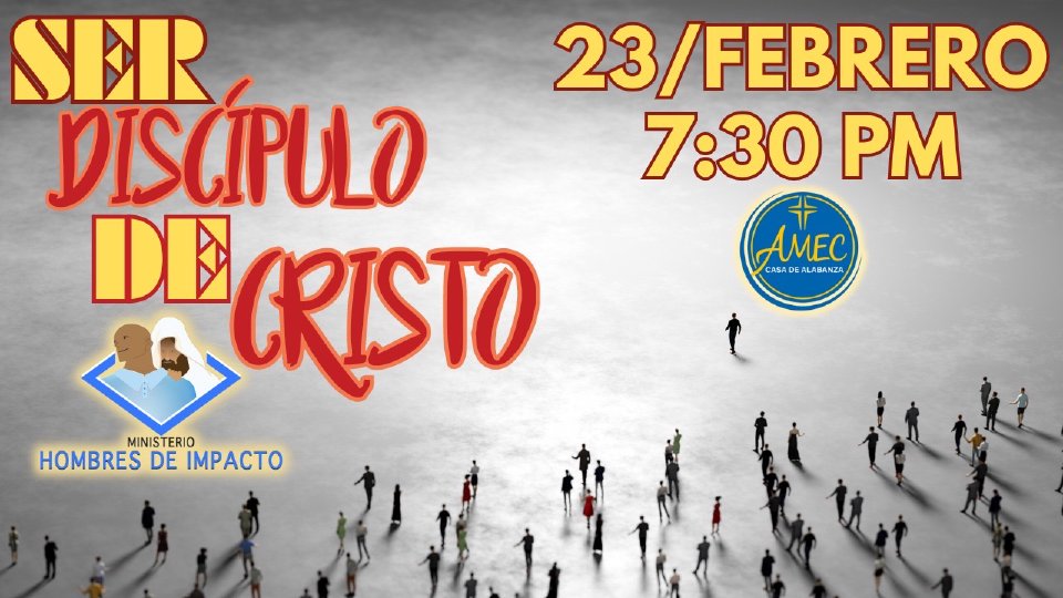 La iglesia a AMEC Casa de Alabanza y su Ministerio Hombres de Impacto les invitan a su reunión bajo el tema: Ser discípulos de Cristo. El viernes, 23 de febrero de 2023 a las 7:30 PM. Lugar : Templo AMEC Casa de Alabanza ¡Te esperamos! #VidaAMEC